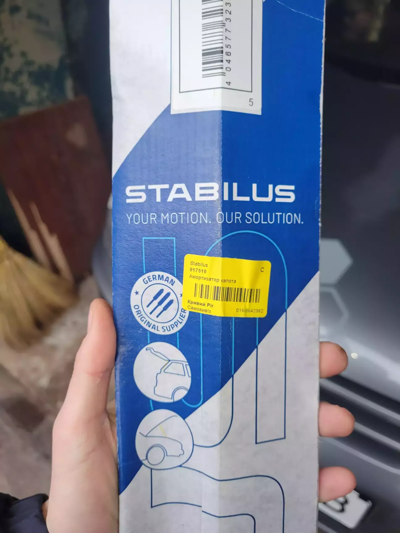 Приїхавши додому, вирішив пошукати що можна придбати на заміну. Почитавши відгуки, підібрав по він-коду амортизатор капоту від виробника Stabilus (це той самий бренд, який ставиться в оригіналі на багато VAG). Обрав з наступними технічними параметрами: