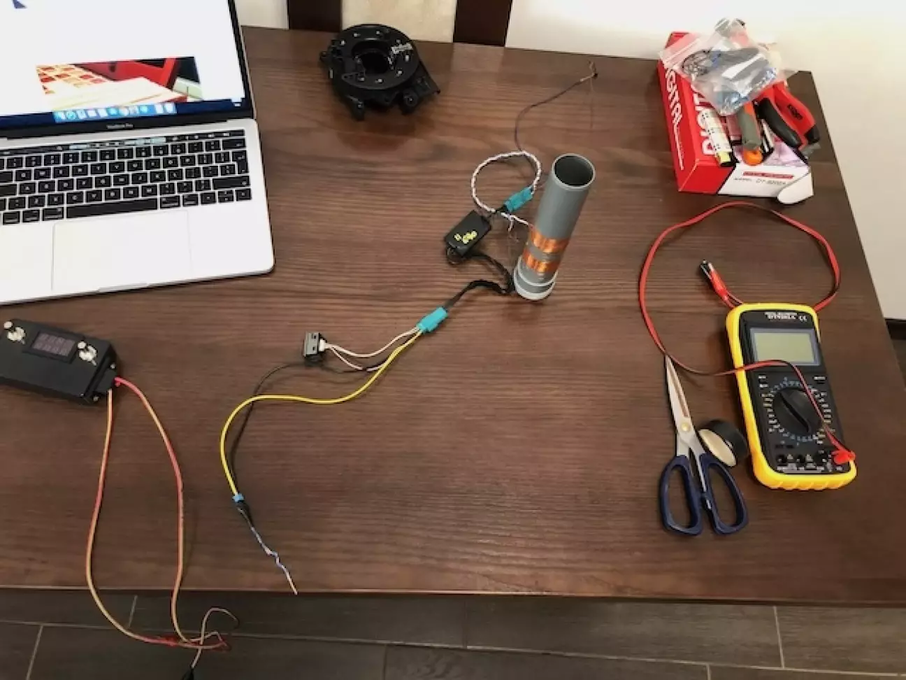 На столі зібрав стенд, щоб підібрати довжину обмотки. Вийшло 2 контури по 6Ом кожен - в паралель - 3Ом: