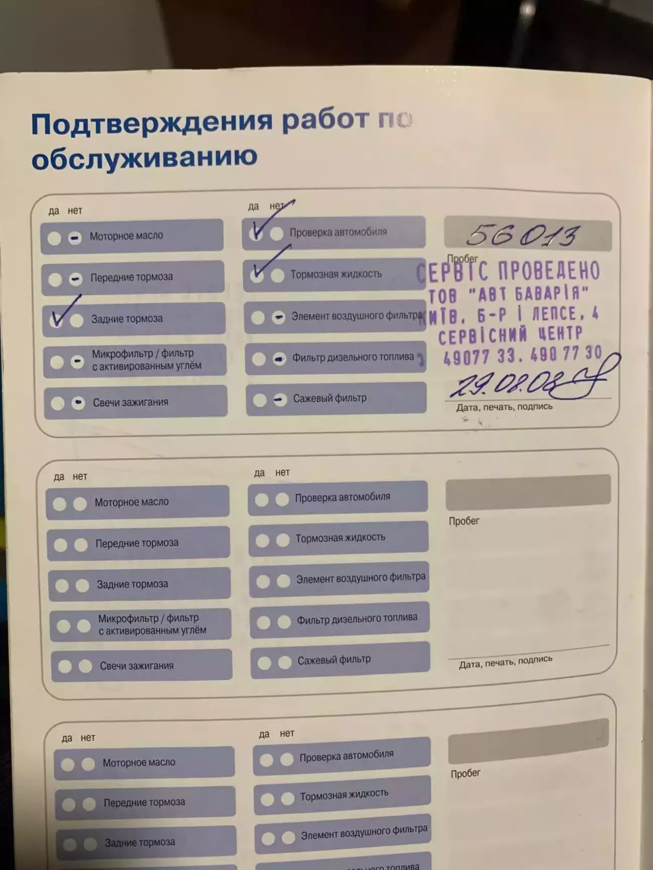 Сервисная книжка(наследие)