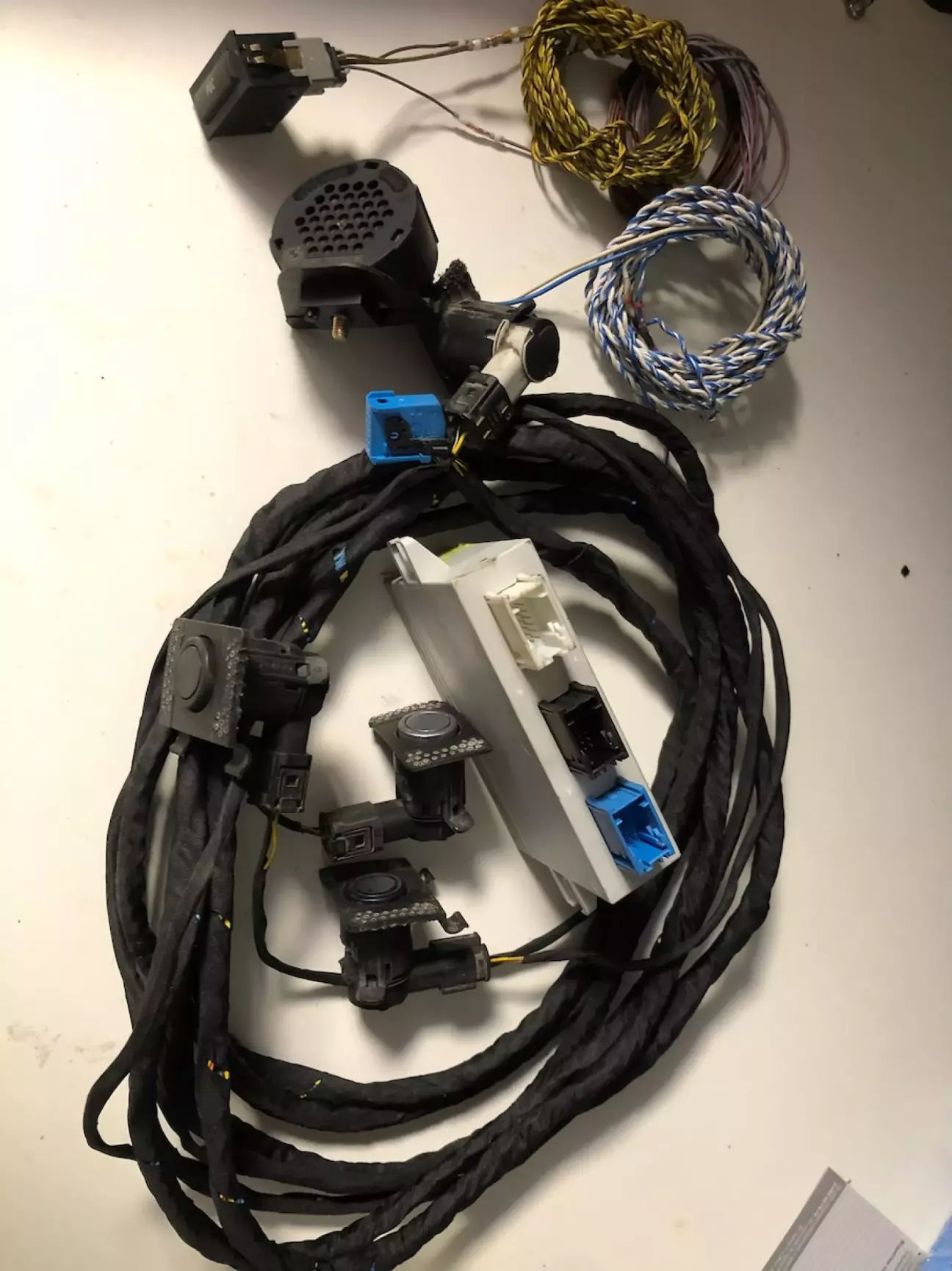 Наразі всі компоненти підключені і коса із самими датчиками живе в ніші під капотом чекаючи малярних робіт щоб змонтувати датчики в передній бампер.