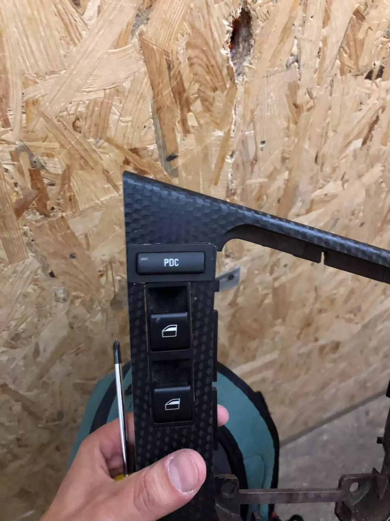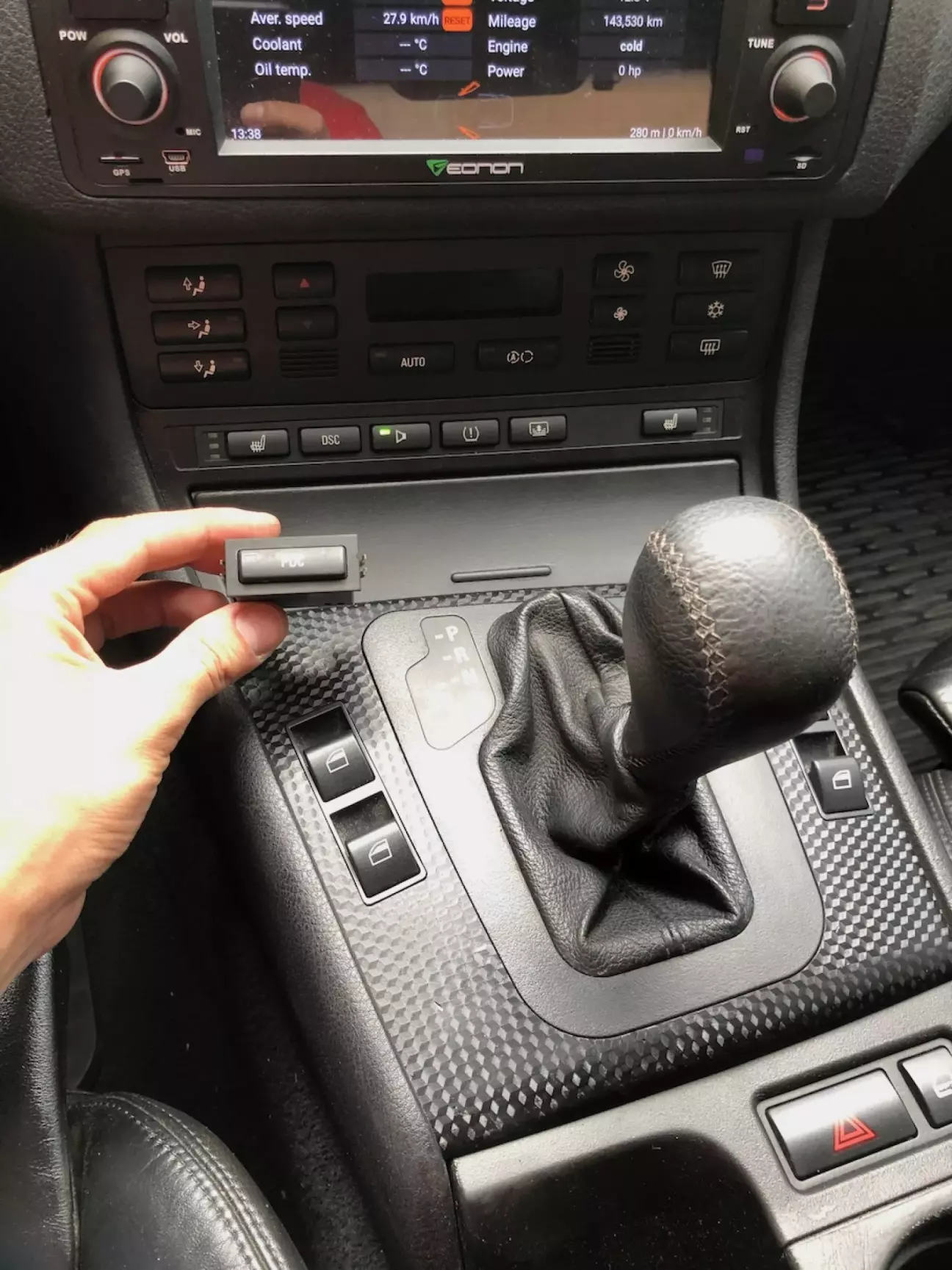 Кнопку PDC вирішив розмістити над перемикачами склопідіймачів. В штатну планку кнопок вона б і так не влізла, та й в мене вже були плани на те пусте місце.