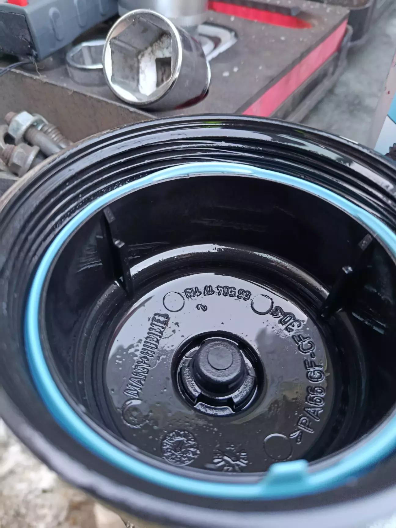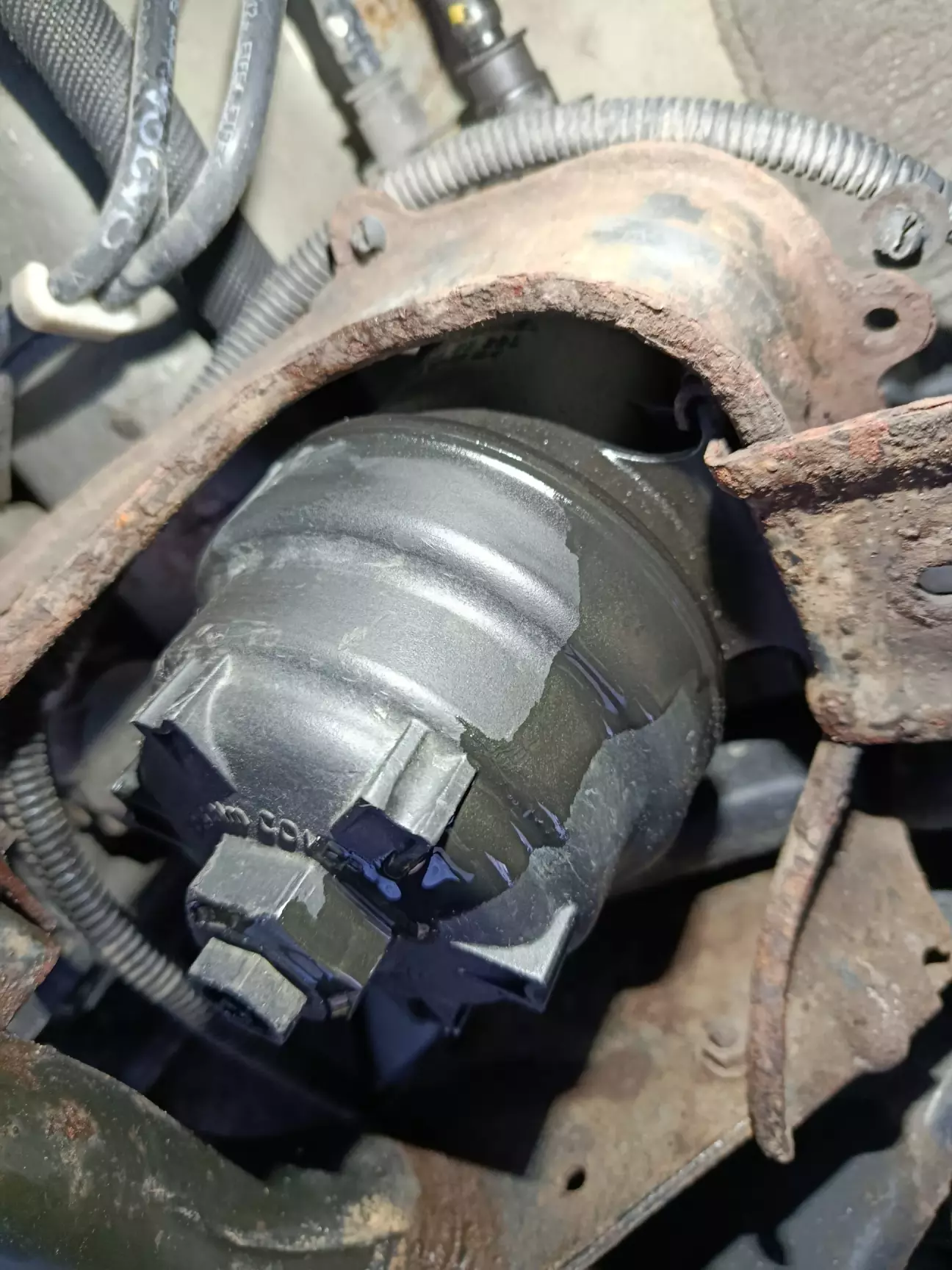 Заліз під машину, корпус фільтра цілий, мабуть пропускає резинове ущільнення подумав я, але не був впевнений. Також глянув в запаси й знайшов між іншим новий фільтр який я літом хотів поміняти але чогось того не зробив. Отож сьогодні раніше пішов з роботи й поїхав на естакаду, ретельно вимив корпус, завів , і от воно тече, дзюрить. Хай йому грець.