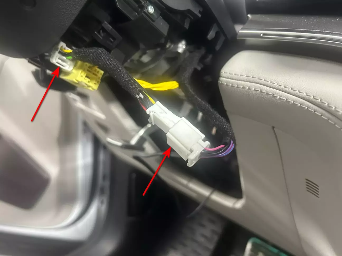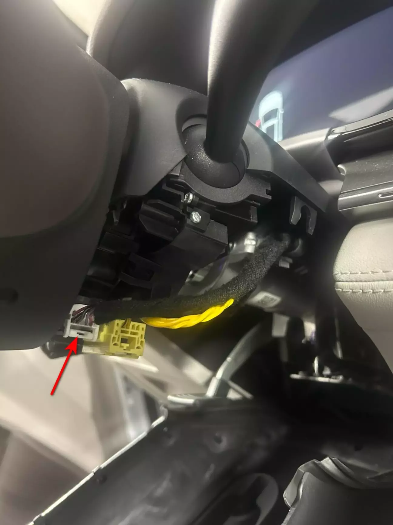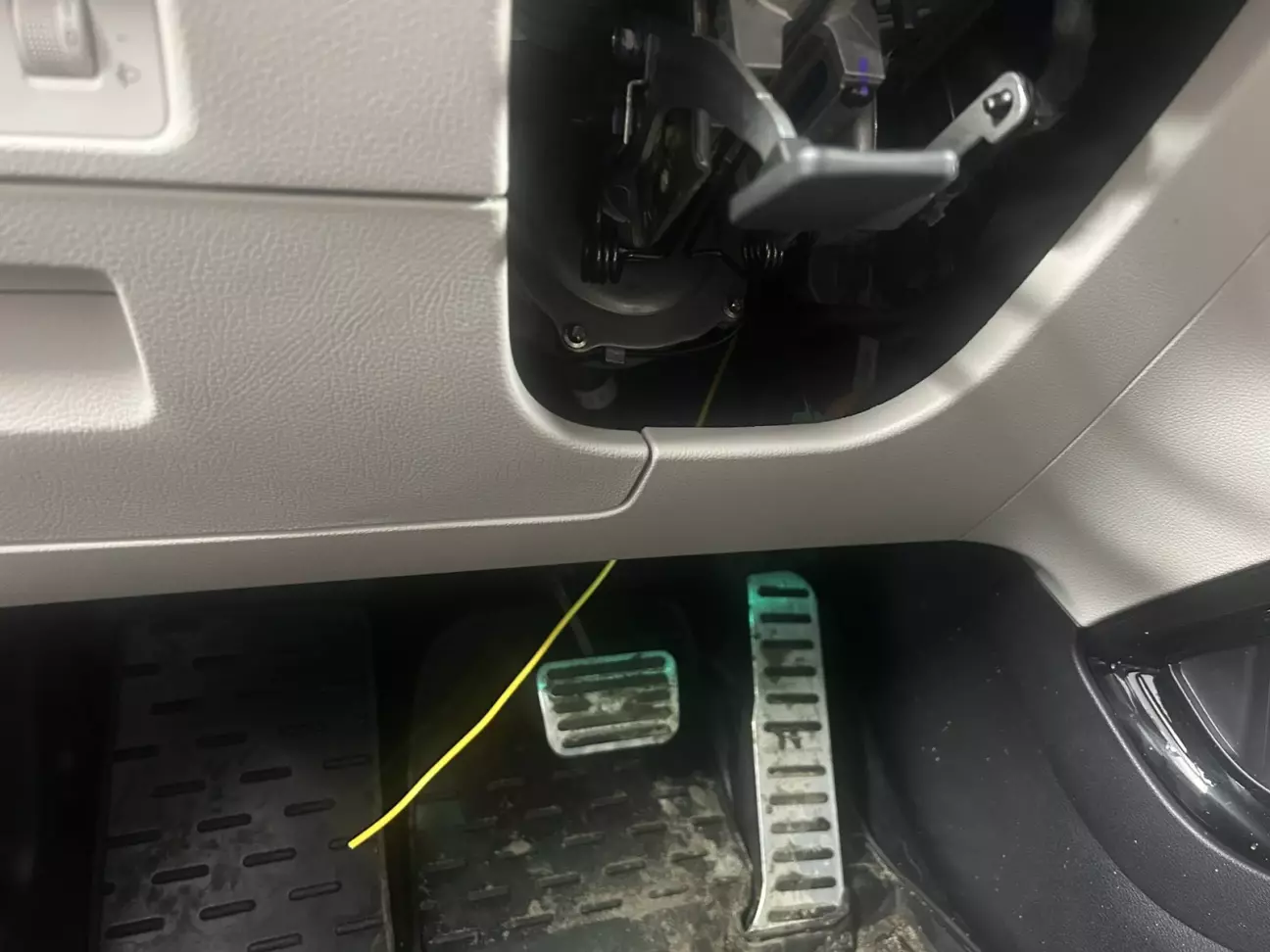Потрібно щоб він вийшов знизу біля кермової колонки.