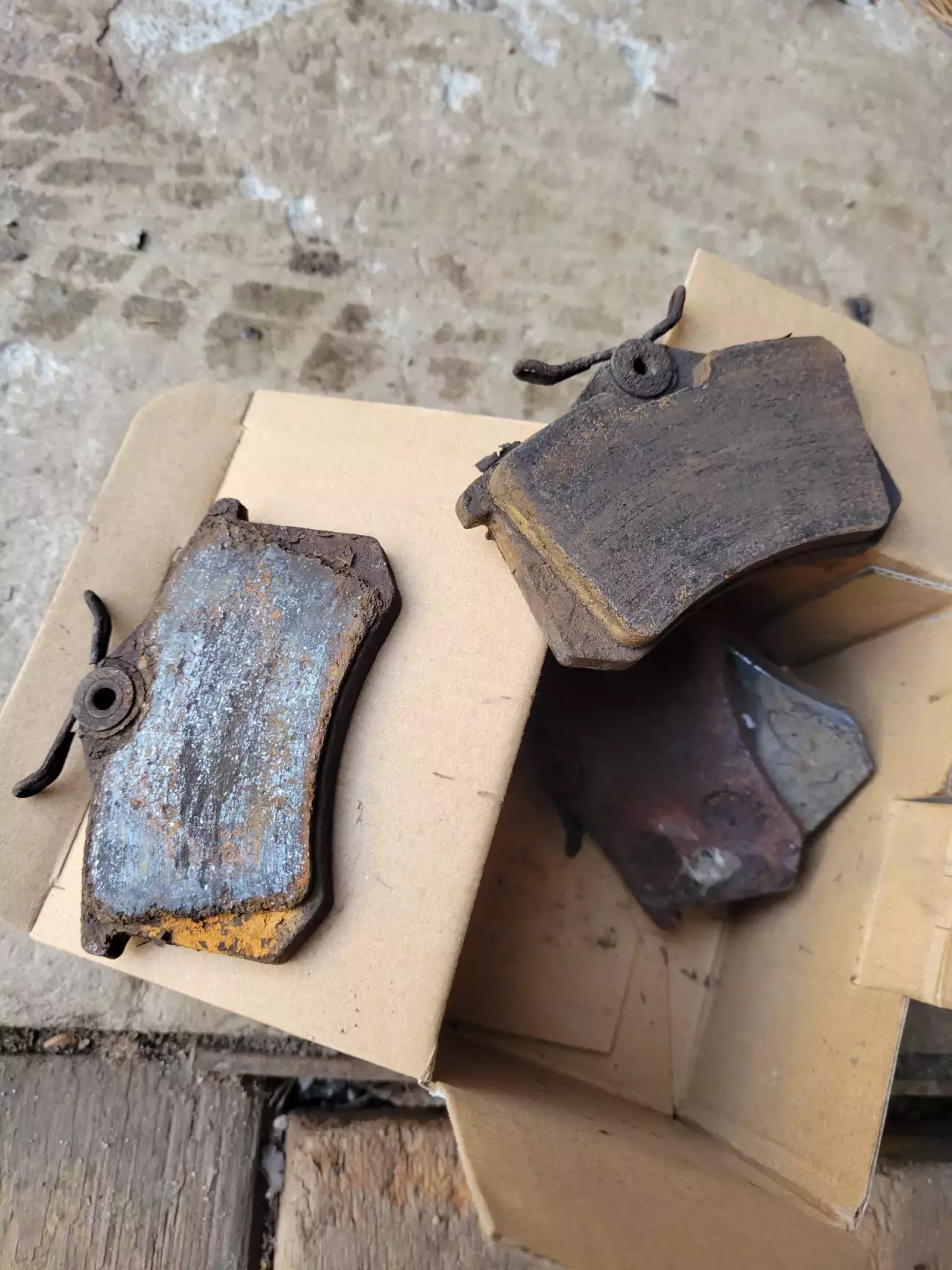 Для розуміння контексту: на авто стояли рідні супорти TRW (видно по маркуванню), колодки Ferodo, а от диски були без маркувань, тому що саме стояло раніше — вже не визначиш. Я не знаю, як так можна погано слідкувати за станом авто. Після зняття старих запчастин, виявилось що поршень в обох супортах був з іржею, направляючі такі самі. Троси ручного гальма, звісно, теж з іржею :) Отже, всі компоненти під заміну. На СТО, де оглядали авто перед купівлею, робили тільки поверхневий огляд, тому мені сказали що все ок. А я сам туди і не ліз за час володіння авто, бо візуальновсе було ок.