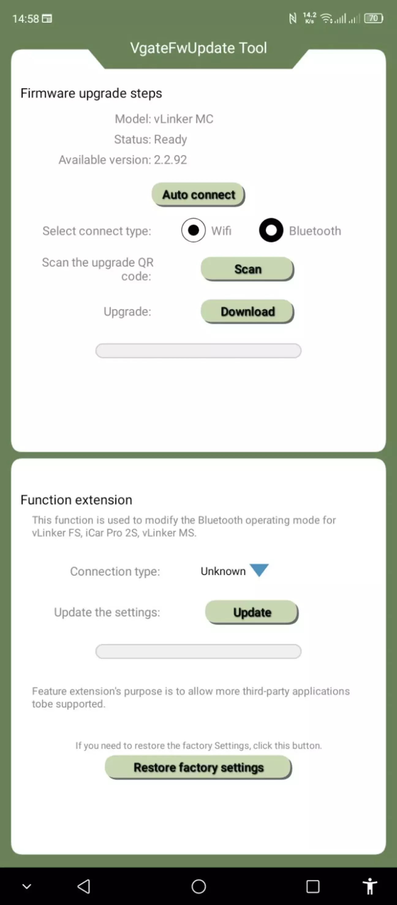 2. Function extension (розширення функцій). Ця функція використовується для зміни режиму роботи Bluetooth для vLinker FS, iCar Pro 2s, vLinker MS. Мета розширення функцій – дозволити підтримку більшої кількості стороннії програм.