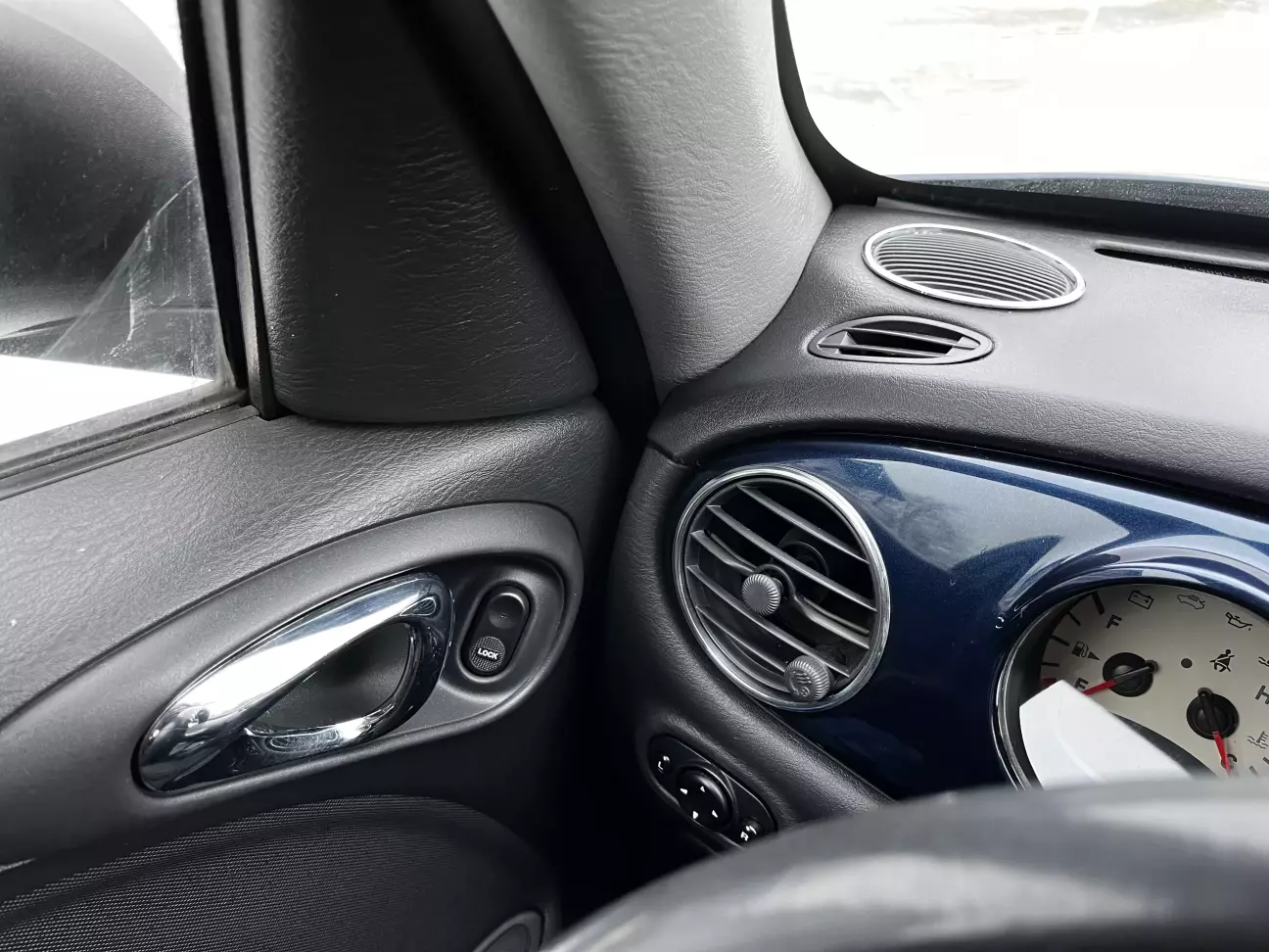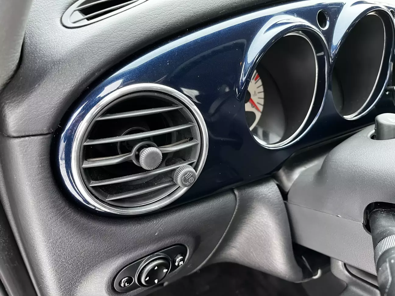 Ось там цього блиску дуже не вистачало! Адже, по перше, тонкі хромовані обідки є навколо колодязів панелі приладів, а, по-друге, на фарбованих в Midnight Blue Pearl панельках алюміній виглядає дуже гарно і олдово - ніби там і був.