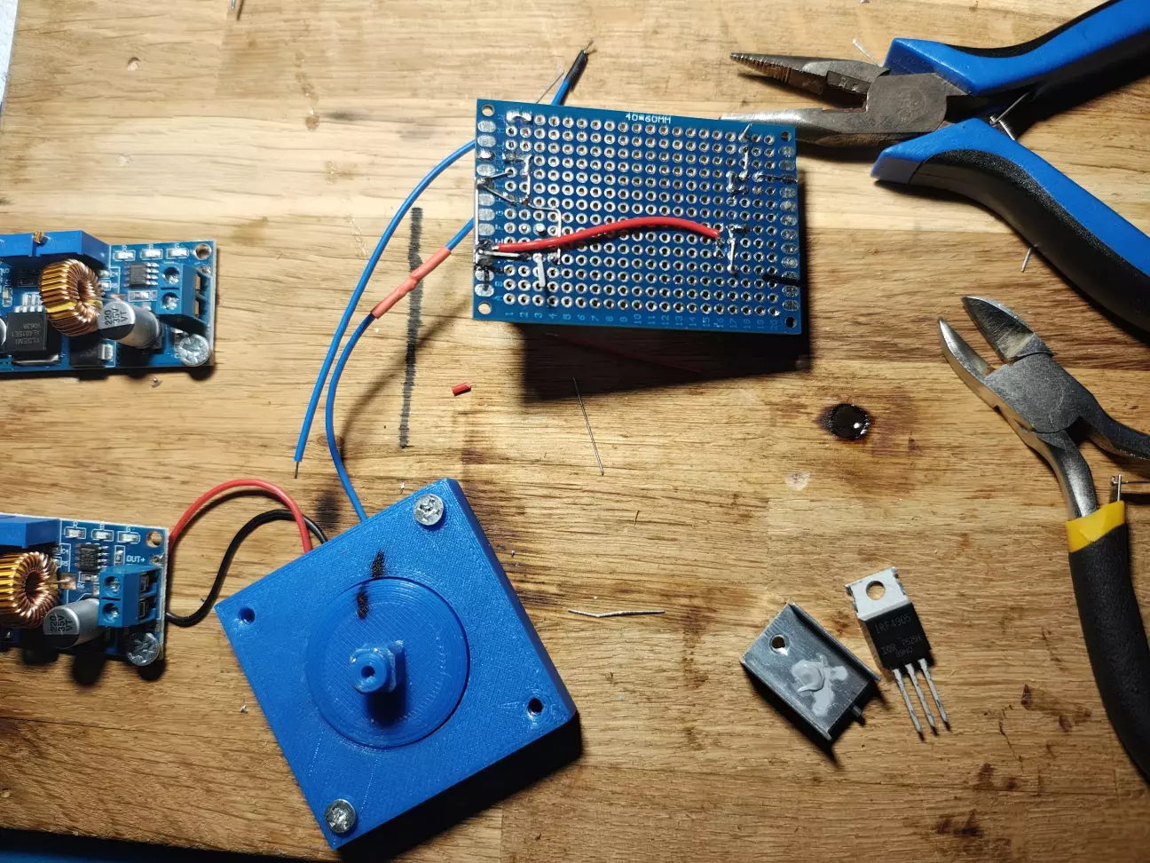 Все це я спаяв по дорозі вивчаючи що і як працює (виявилось що енкодер вправо зменшує напругу, через що прийшлось перепаювати всю схему) як виставити пороги, та що куди тикати паяльником, а зважаючи на те що ШІ дуже часто загоняється, це була ще та пригода)