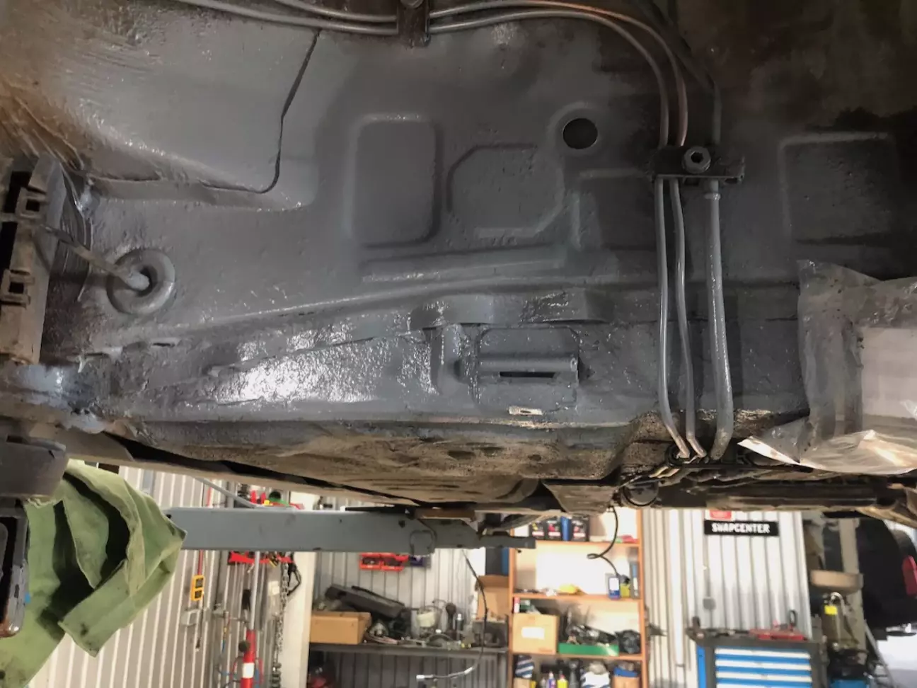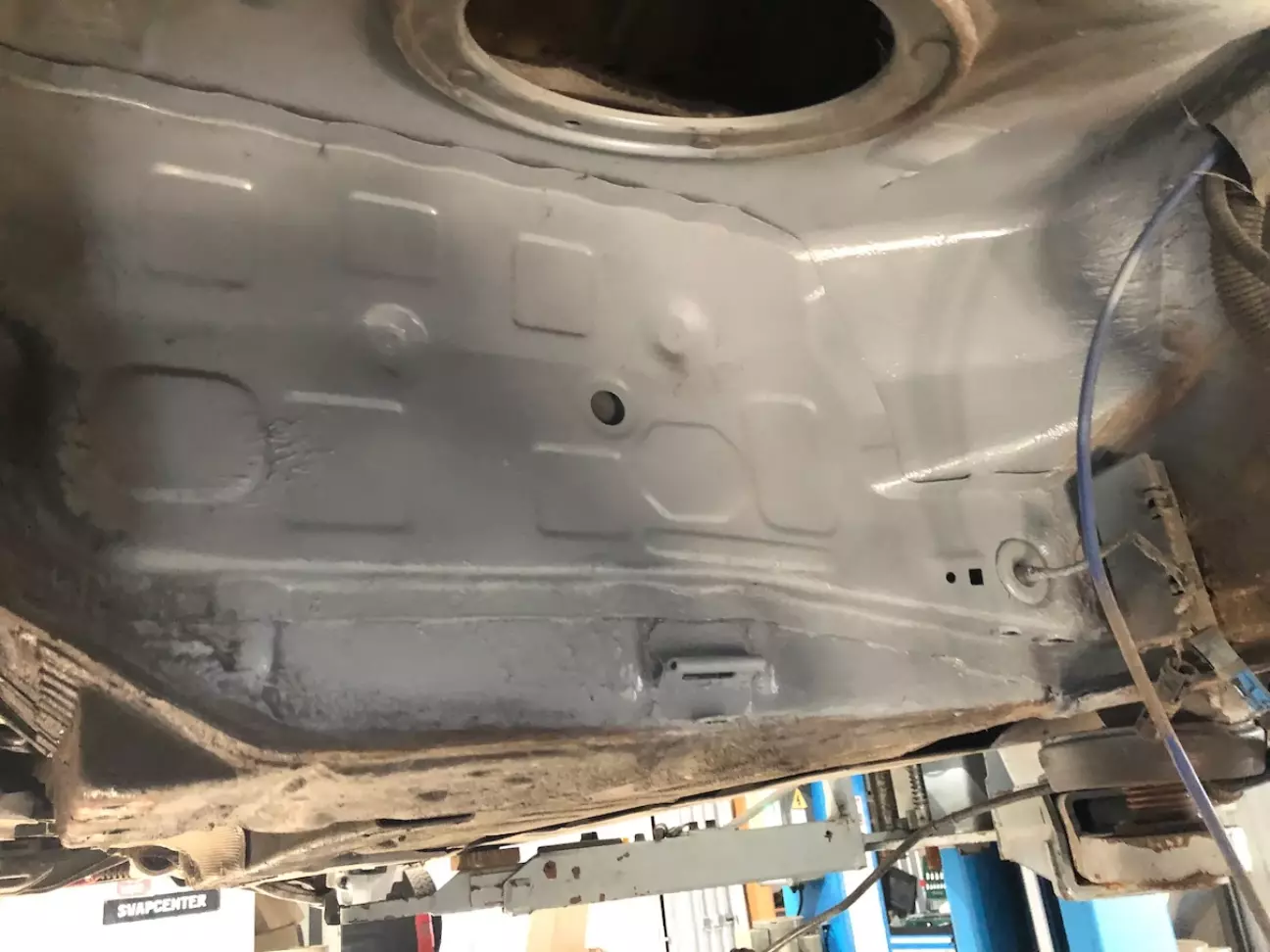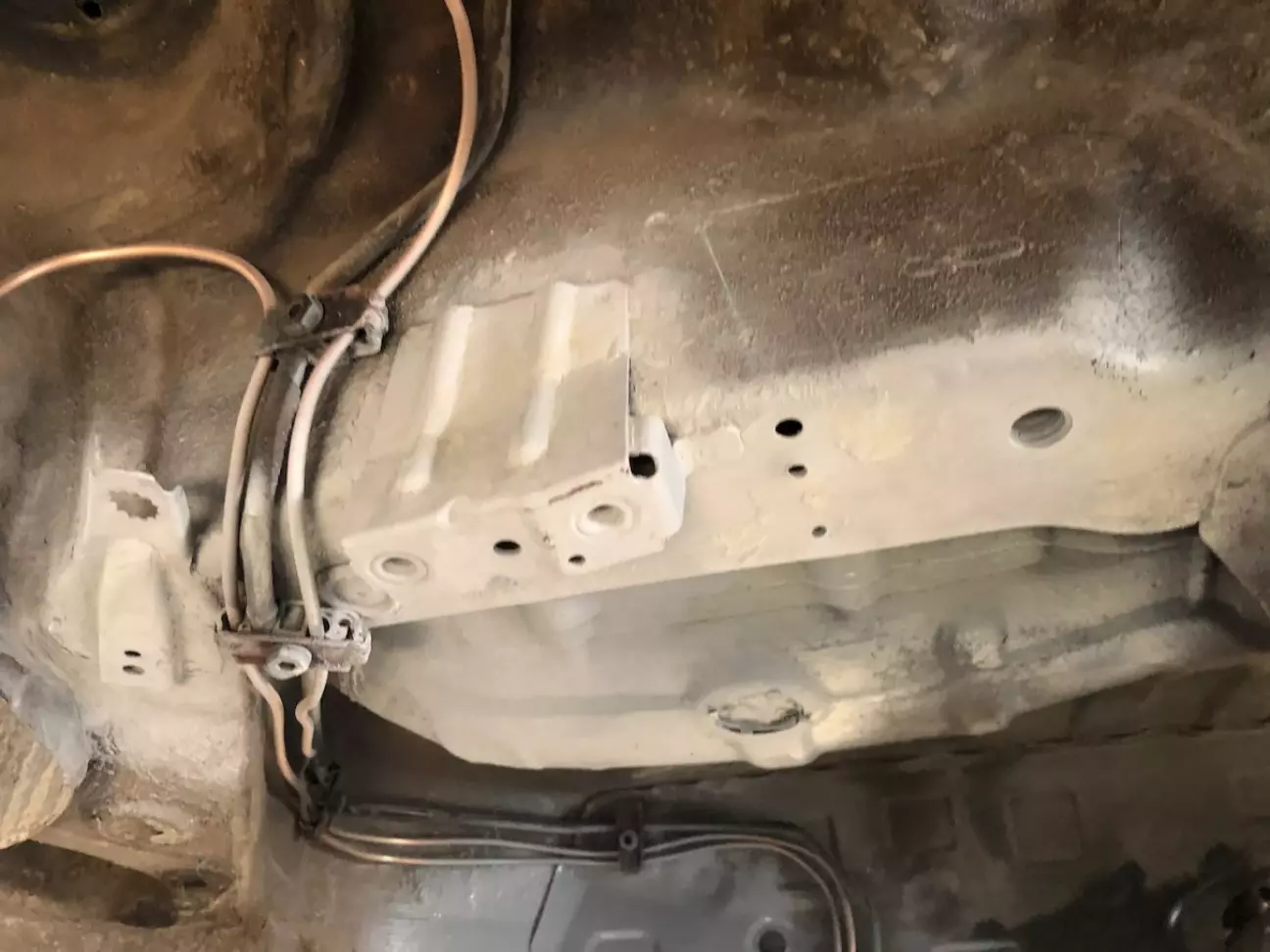 Ну і з тим що прокладались повністю нові гальмівні трубки довелось зняти задній підрамник. Там виявився армагедон. Тріщин на щастя не було, але весь кузов був покритий поверхневим шаром іржі. Тому все зачистили, протравили і задули.