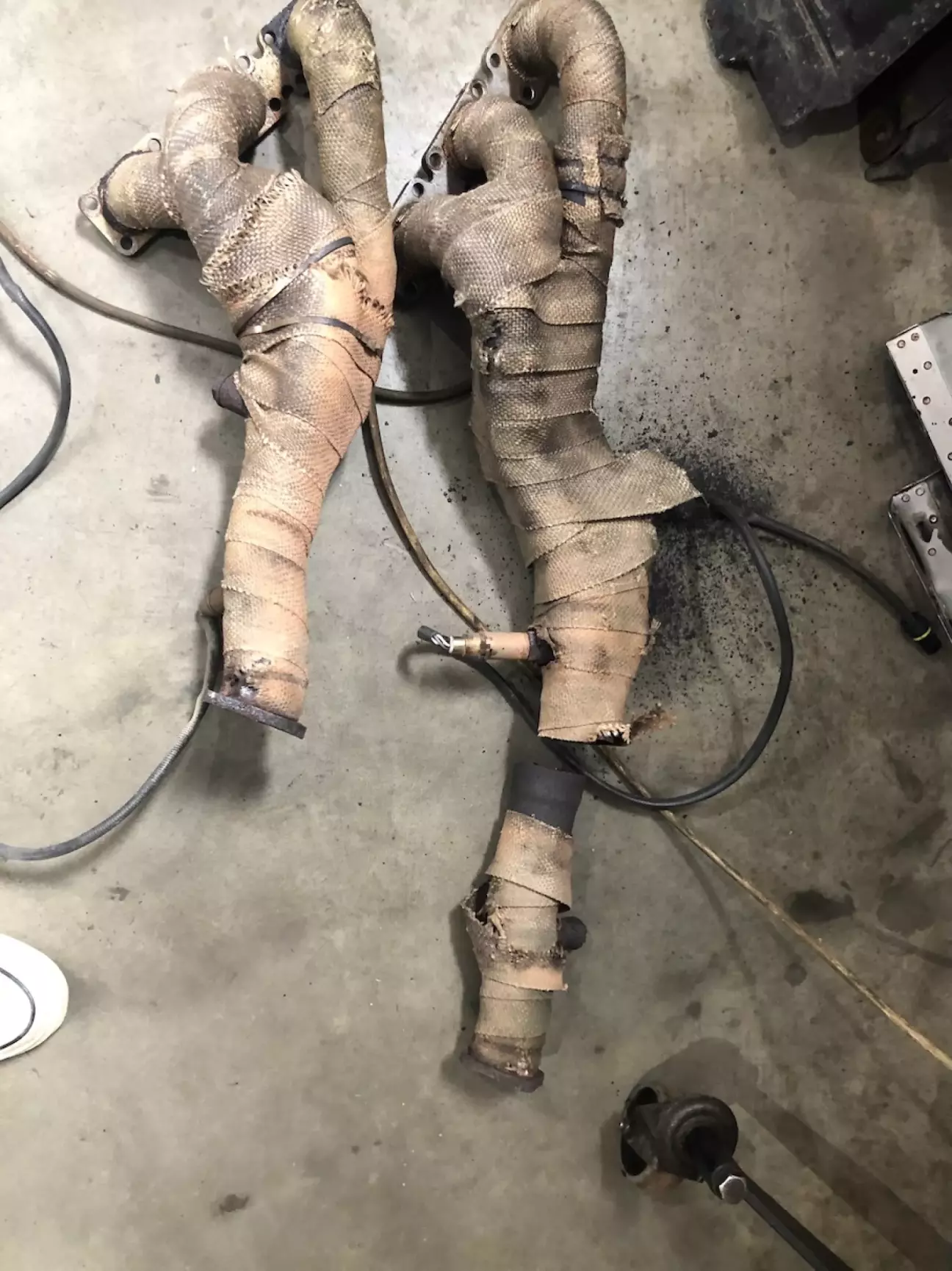 В процесі цього всього зауважив неприємне: Встановлені кілька років назад рівнодовгі випускні колектори зігнили по шву. Підозрюю через намотаний термобинт: