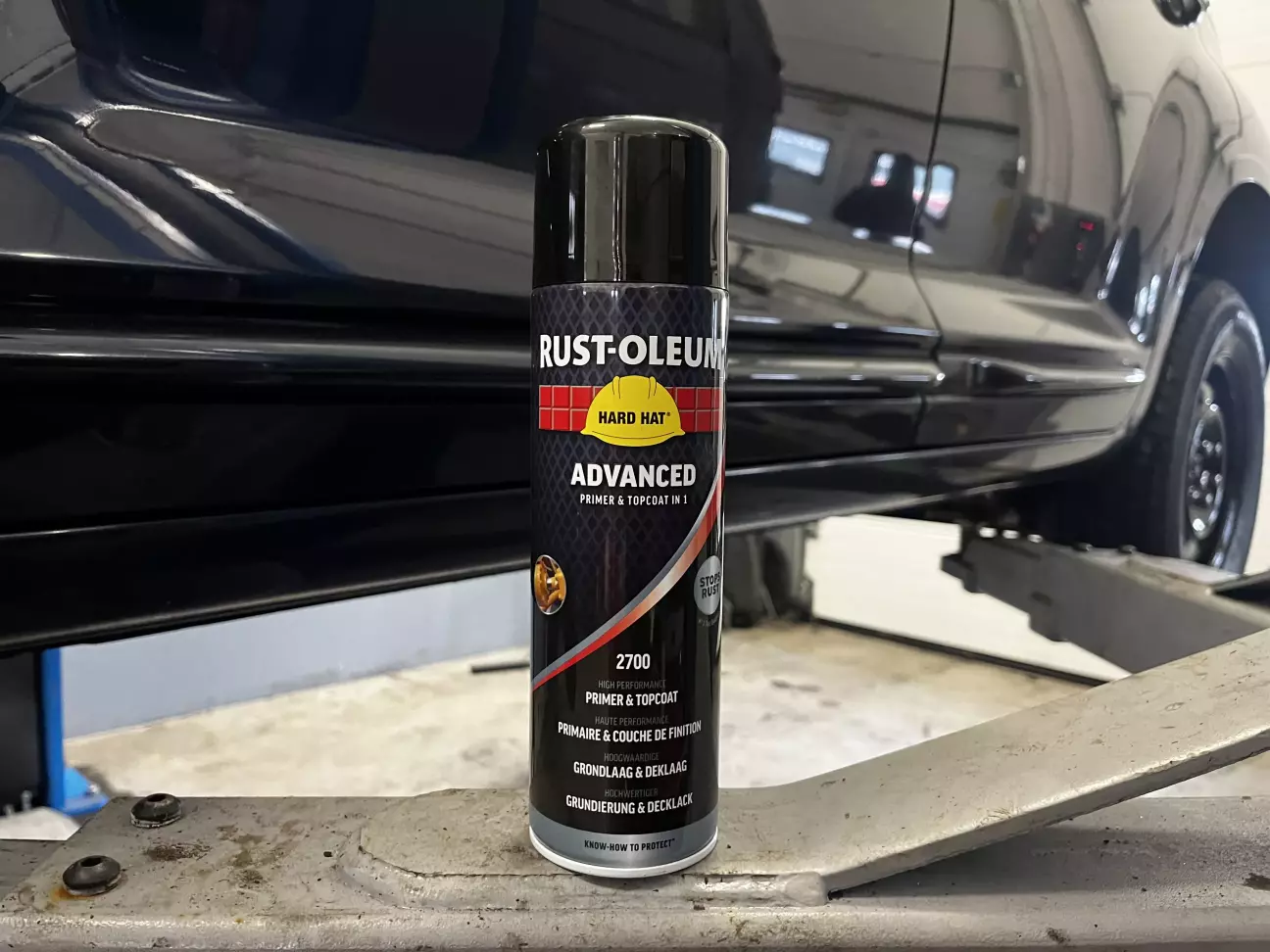 Передивившись безліч американських відео з їхнім улюбленим Rust Oleum, яким вони фарбують все навколо, мені закортіло спробувати цей диво-продукт. Серія Hard Hat Advanced являє собою праймер і фарбу в одному флаконі, і згідно з інструкцією цю суміш можна наносити як на голий (зокрема полірований) метал, так і на шар зачищеної іржі. А це ж саме те, що мені потрібно!