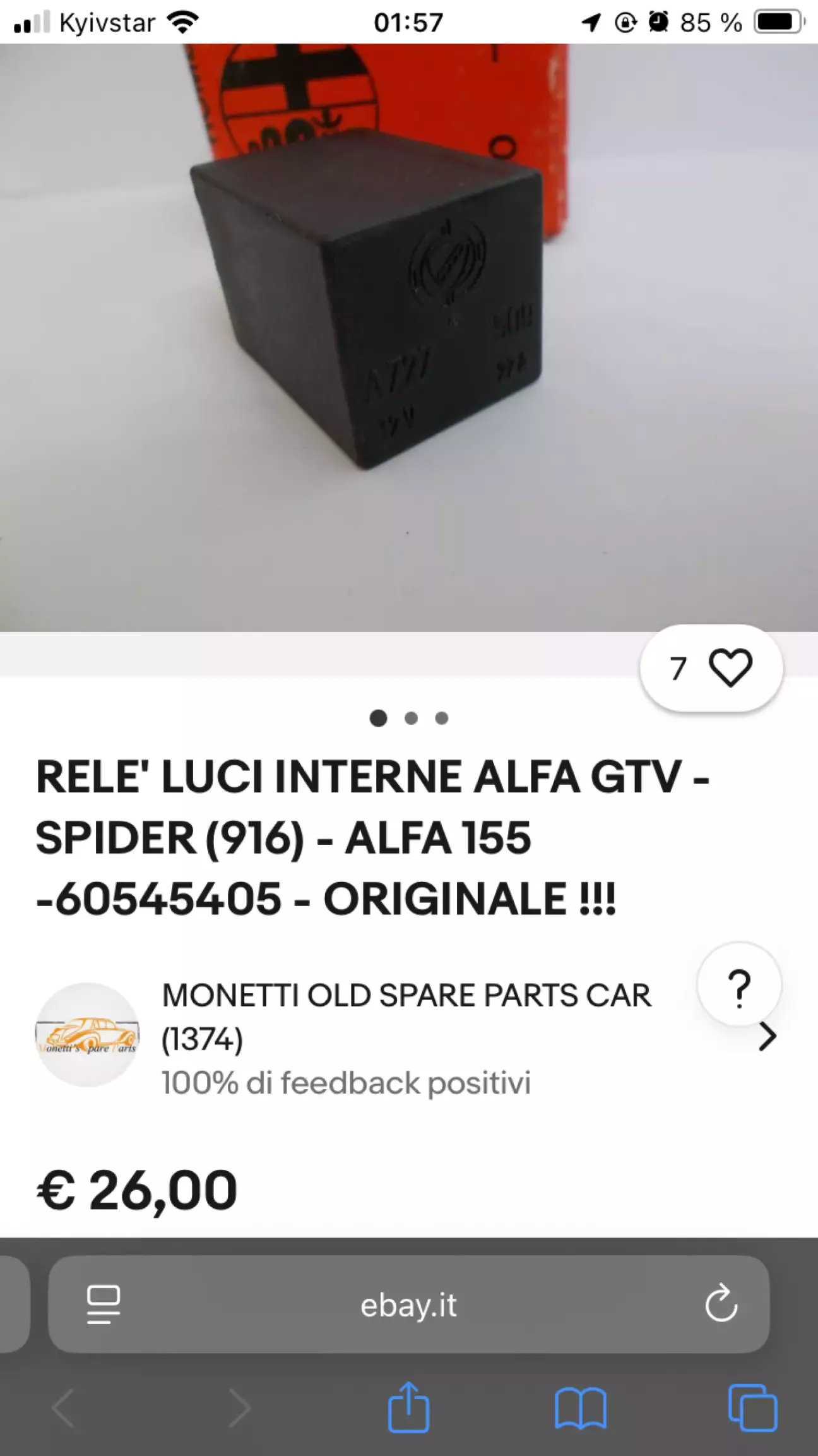 Поэтому лезем в каталог, находим нужный артикул реле, смотрим что в Украине его нет в наличии, поэтому ищим на eBay, находим то что нам надо в Италии и покупаем.
