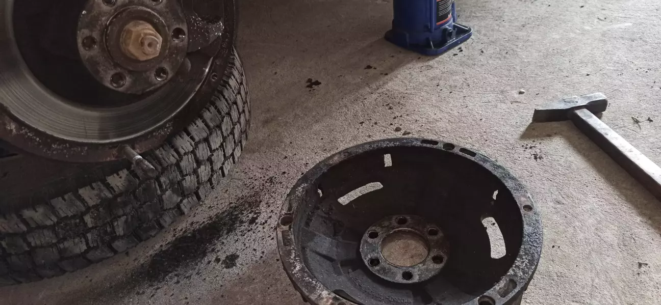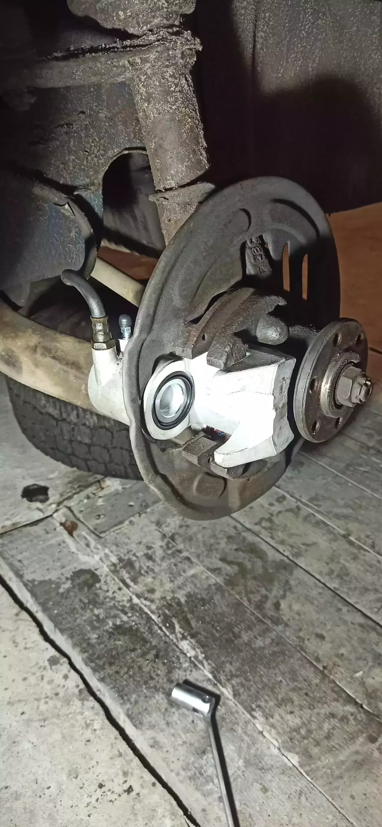 Прокачування правого колеса зайняло трохи часу(в дописі вище), прийшов час міняти лівий диск та колодки, і тут мене спіткала біда, ліва сторона теж виявилась заклинена.