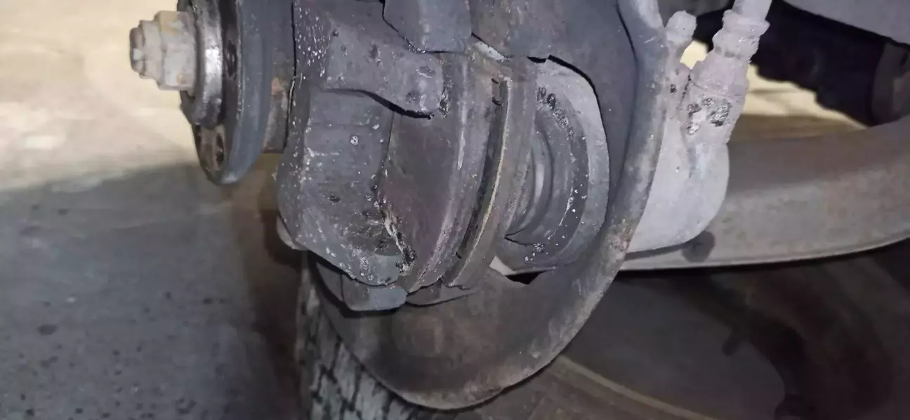 Так як одразу після ремонту допис не зробив, то з часом думка і натхнення було загублено. Все починалось з того що автівка перестала нормально їхати(про це писав в попередніх дописах), з правого переднього колеса після їзди було чути дивні звуки, пропав вільний ход (накат). Розібравши праве колесо побачив вклинивший суппорт внаслідок чого був стерт гальмівний диск і стерті колодки.