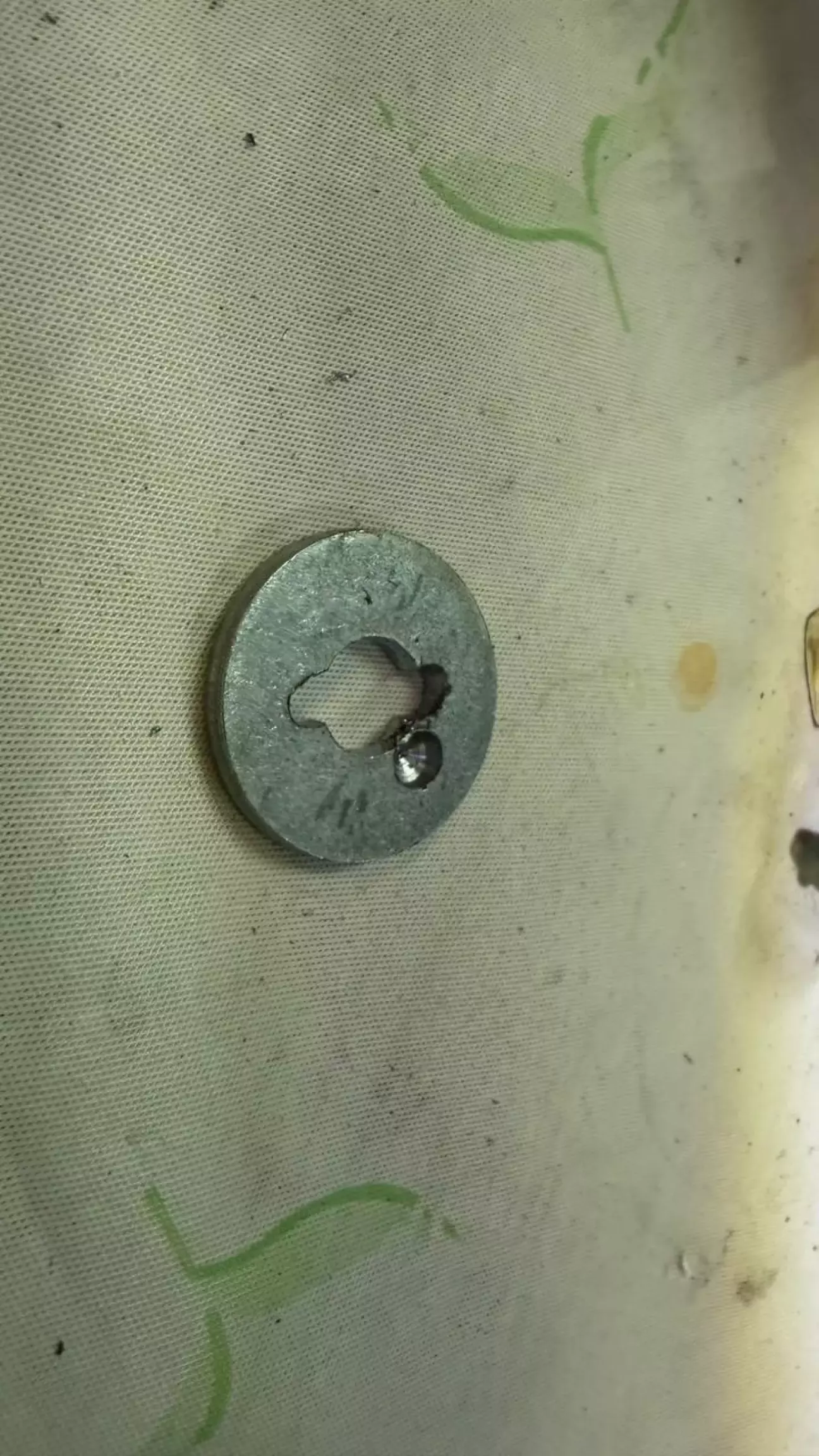 Далі потрібно було трохи доопрацювати ногу, щоб дзеркало міцно на ній трималось, бо нога від рідного дзеркала мала меншу площу контакту. Знайшов підходящу шайбу, зробив пропити під виступи на нозі і отвір під виступ на корпусі дзеркала. Нога стала чудово, як рідна)