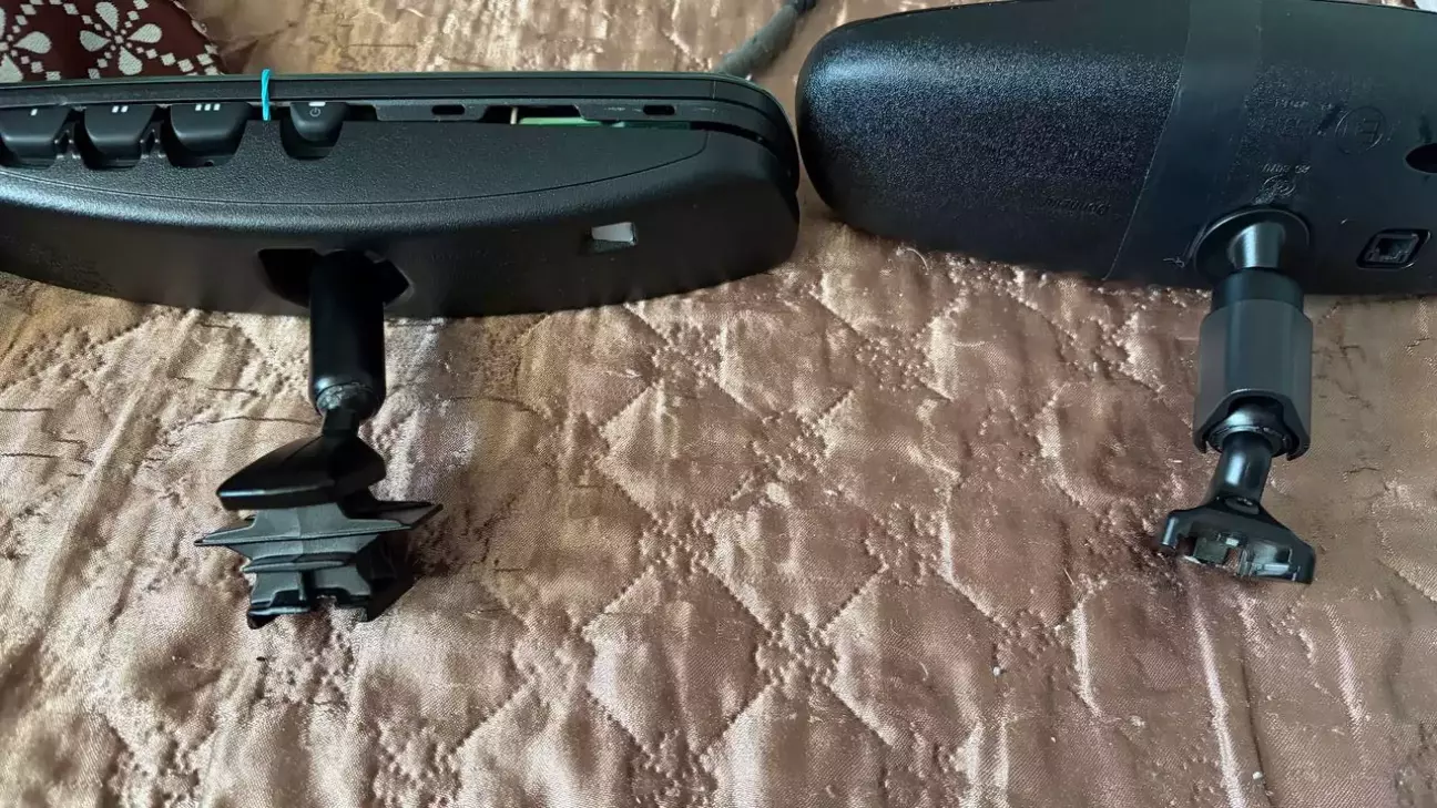 Обидва дзеркала вдалось аккуратно розібрати. Корпус рідного дзеркала склеєний, а безрамкового - на защолках. Прикинув, що буде, якщо переставити ноги: