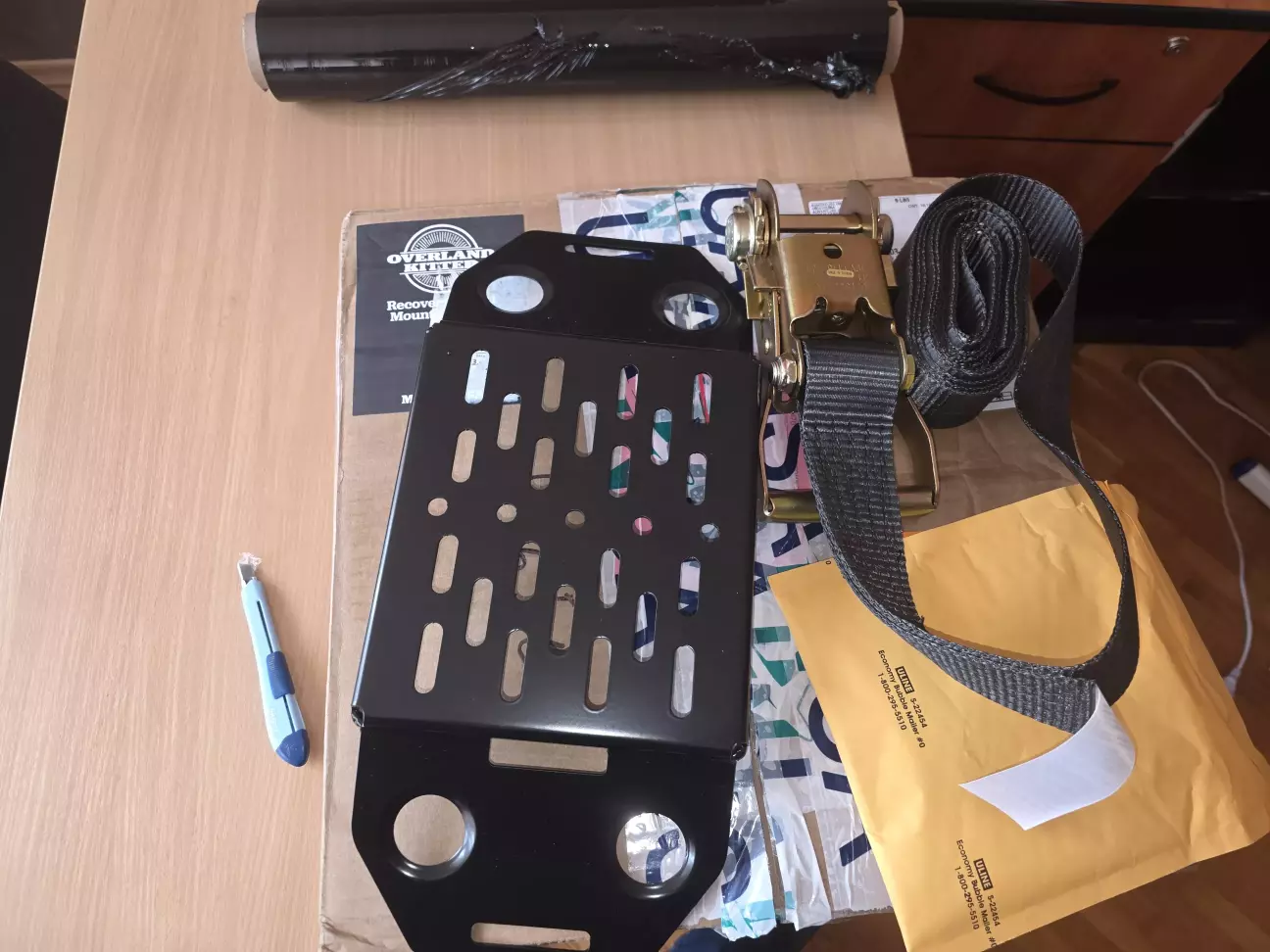 Оскільки в мене є Сенд траки але кріпити на верх я бажання не маю,то я і шукав саме таке краплення,щоб не возити їх в салоні. Знайшов я комплект в штатах і полетіли))))Замовив я 1 січня а в мене вже воно було на столі 23))))