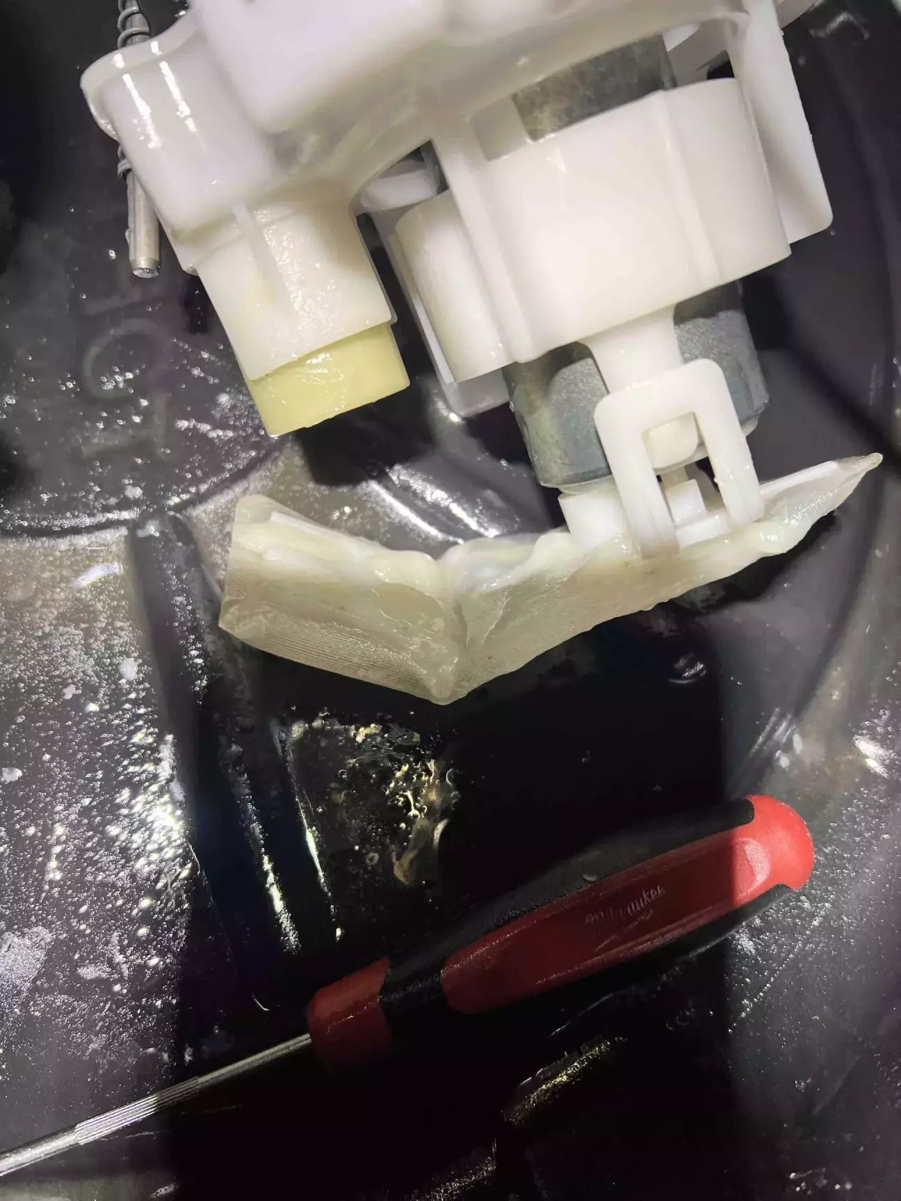 3) Поки мені їде ключ від Toptul JDCB0117, щоб відкрутити гайку паливного модуля, я вирішую зробити ревізію паливного фільтра. Після демонтажу фільтра починає підтверджуватися припущення про парафін у баку.