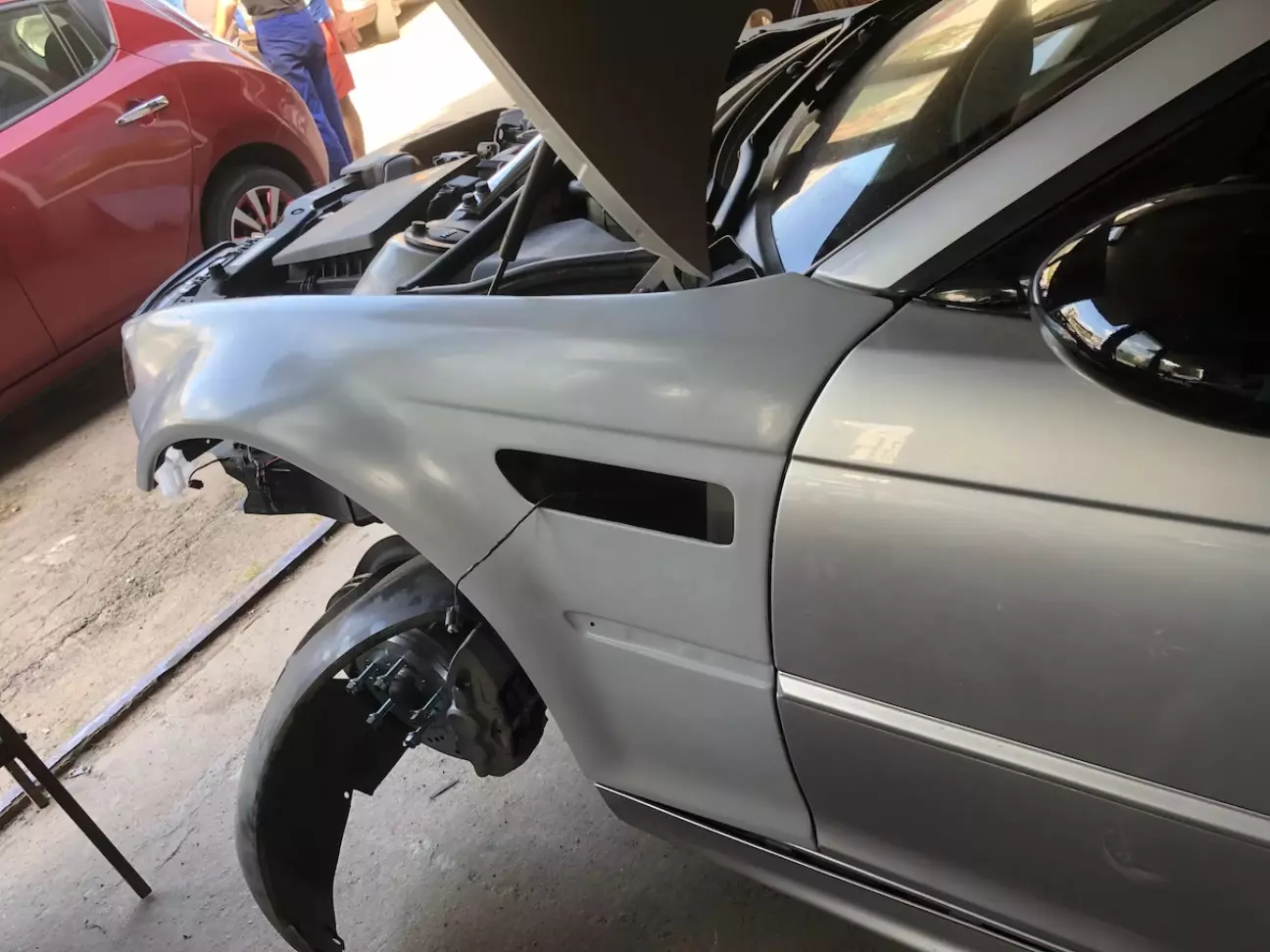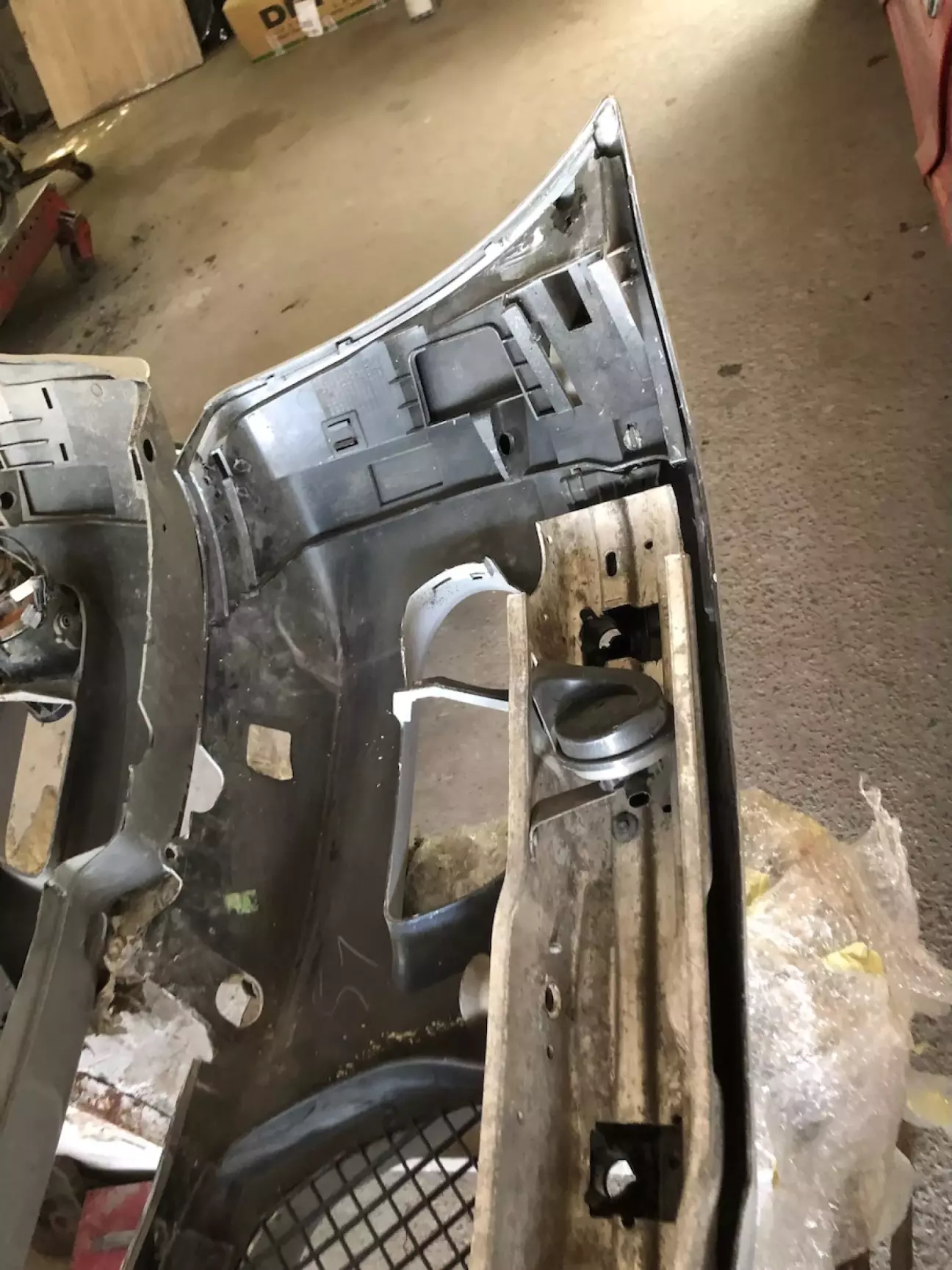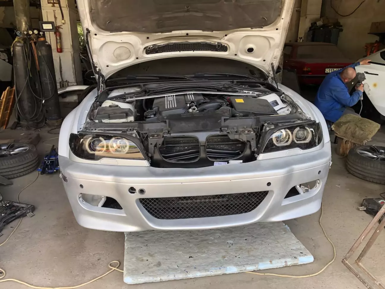 Виявилось що сусід по гаражу навпроти може допомогти мені з чорновим фарбуванням бампера, грунт, шпатлівка і т.д.