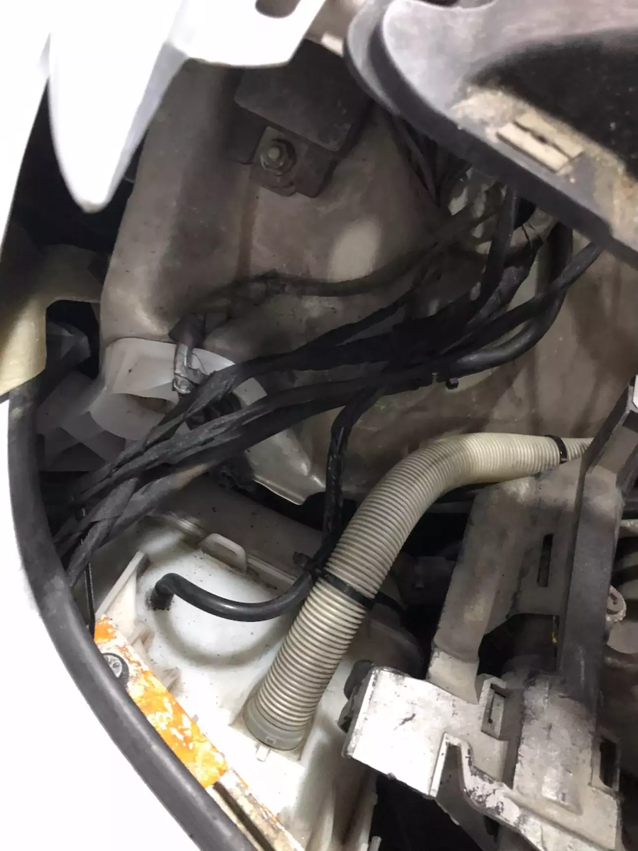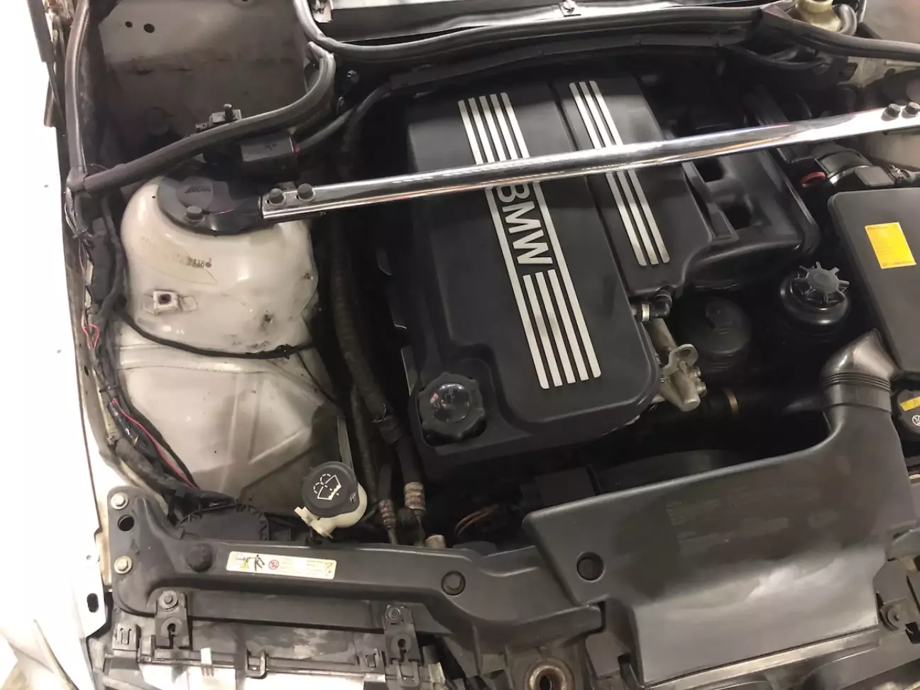 Ще одною фішкою M3 став бачок омивайки який я переніс в нішу бампера, звільнивши таким чином місце на крилі під майбутні дооснащення. (До речі бачків було теж 2 види - під дорестовий і рестовий бампери, я цього не знав і взяв рестовий бачок. Відрізняються вони довжиною планки кріплення, бо алюмінієвий підсилювач коротший за карбоновий. Тому довелось бачок вішати на металеву пластину щоб подовжити його кріплення)