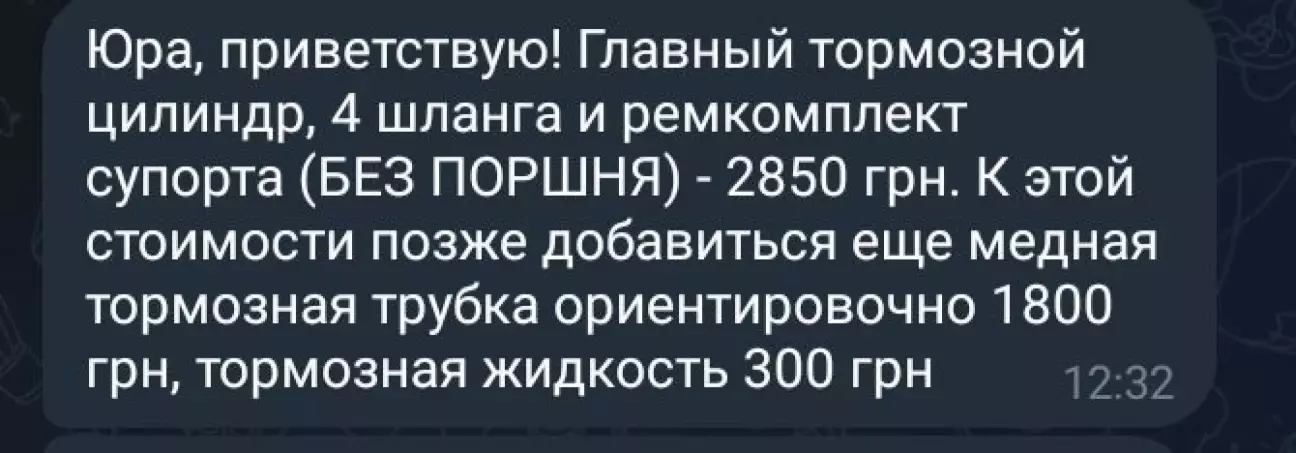 Я хоть и говорил мастеру чтобы проверил всё по тормозам, и конечно же он болт ложил на мои слова.