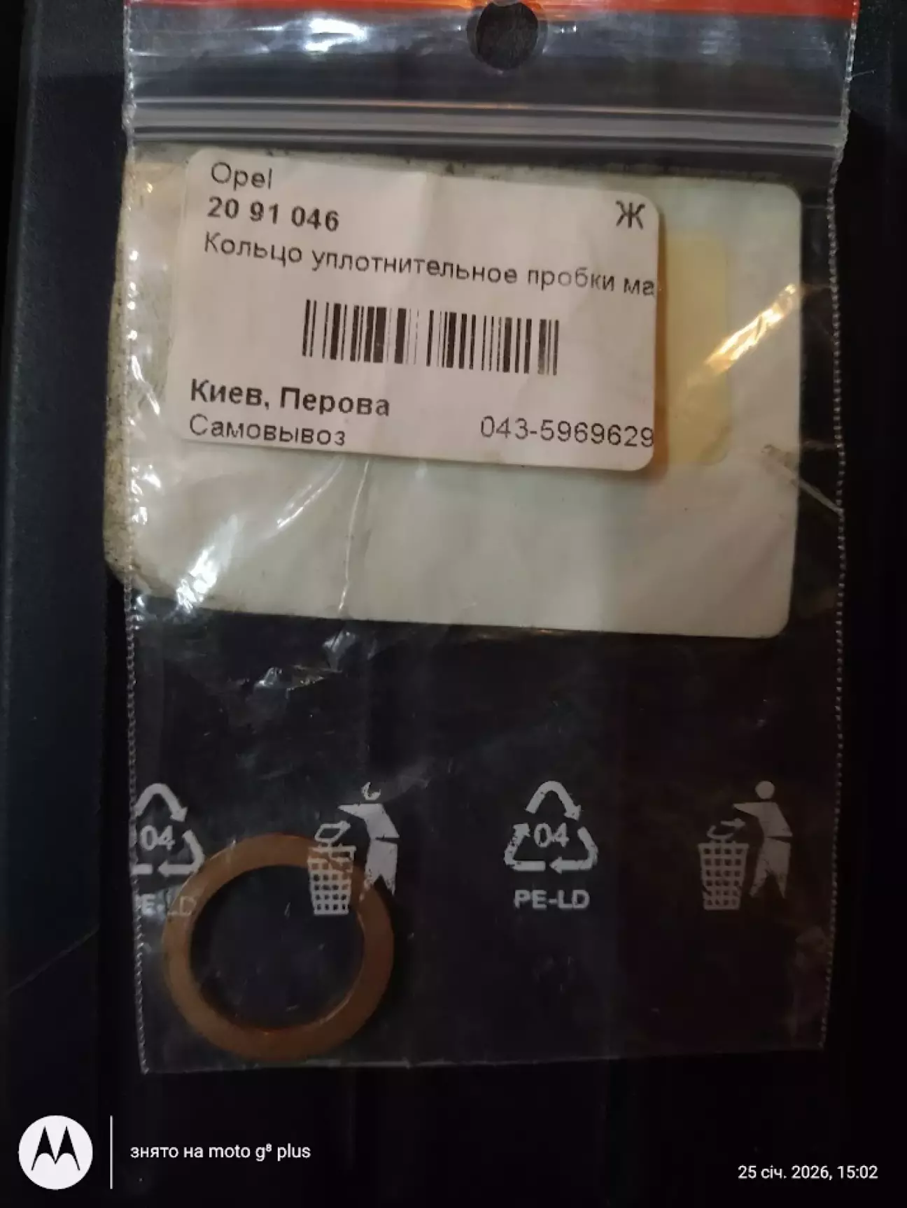 Кільце ущільнююче пробки зливної OPEL 20 91 046 - 1шт.