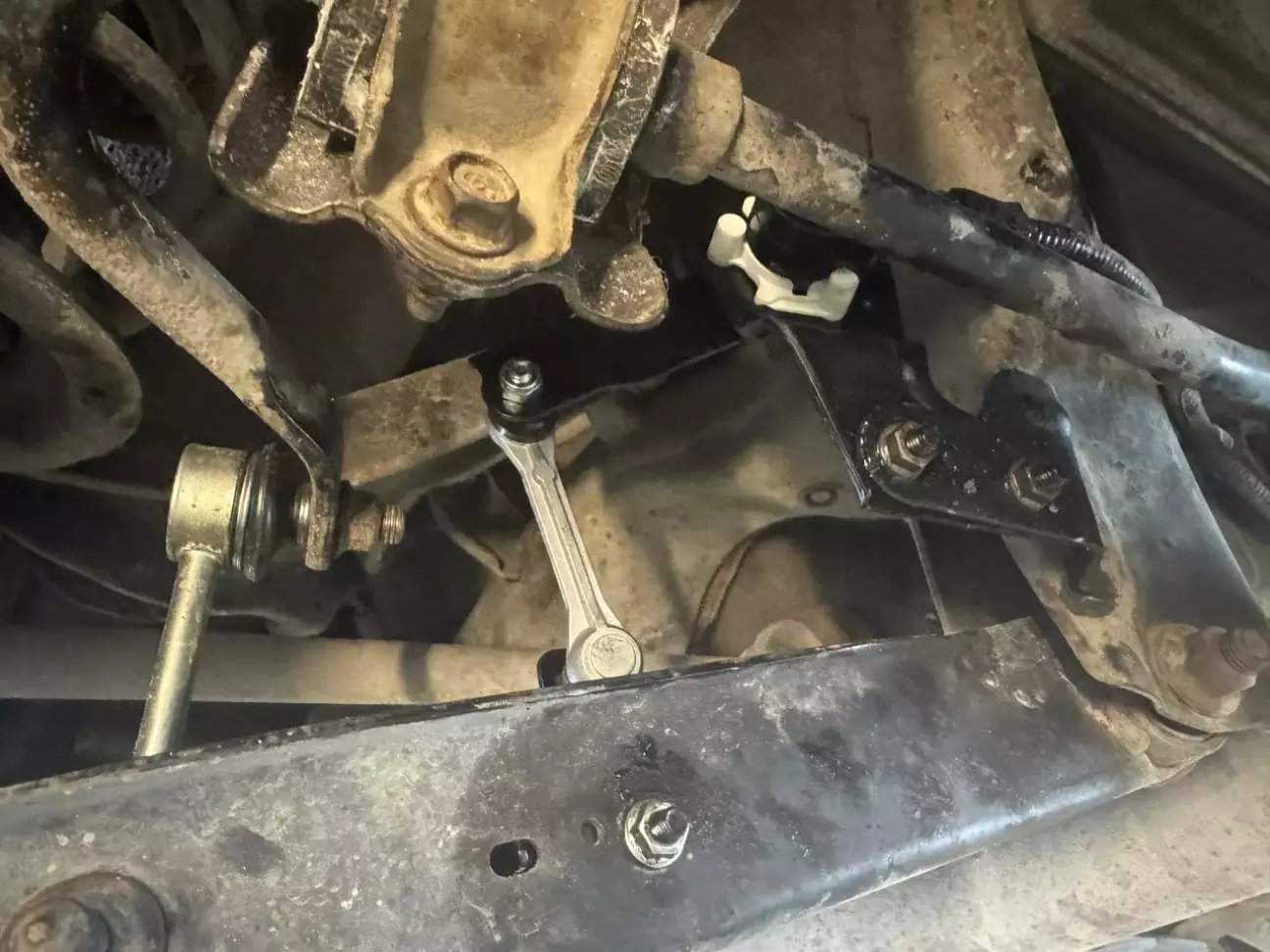 Спочатку я знайшов і замовив самі моторчики датчиків. Паралельно думав і про тяги. Під час робіт із ходовою частиною помітив, що на задньому датчику відсутнє штатне кріплення — там уже стояла універсальна тяга. Через це ті тяги, які продаються “під конкретний кузов Subaru”, не підходять: вони занадто короткі й не мають правильного кріплення до важеля.