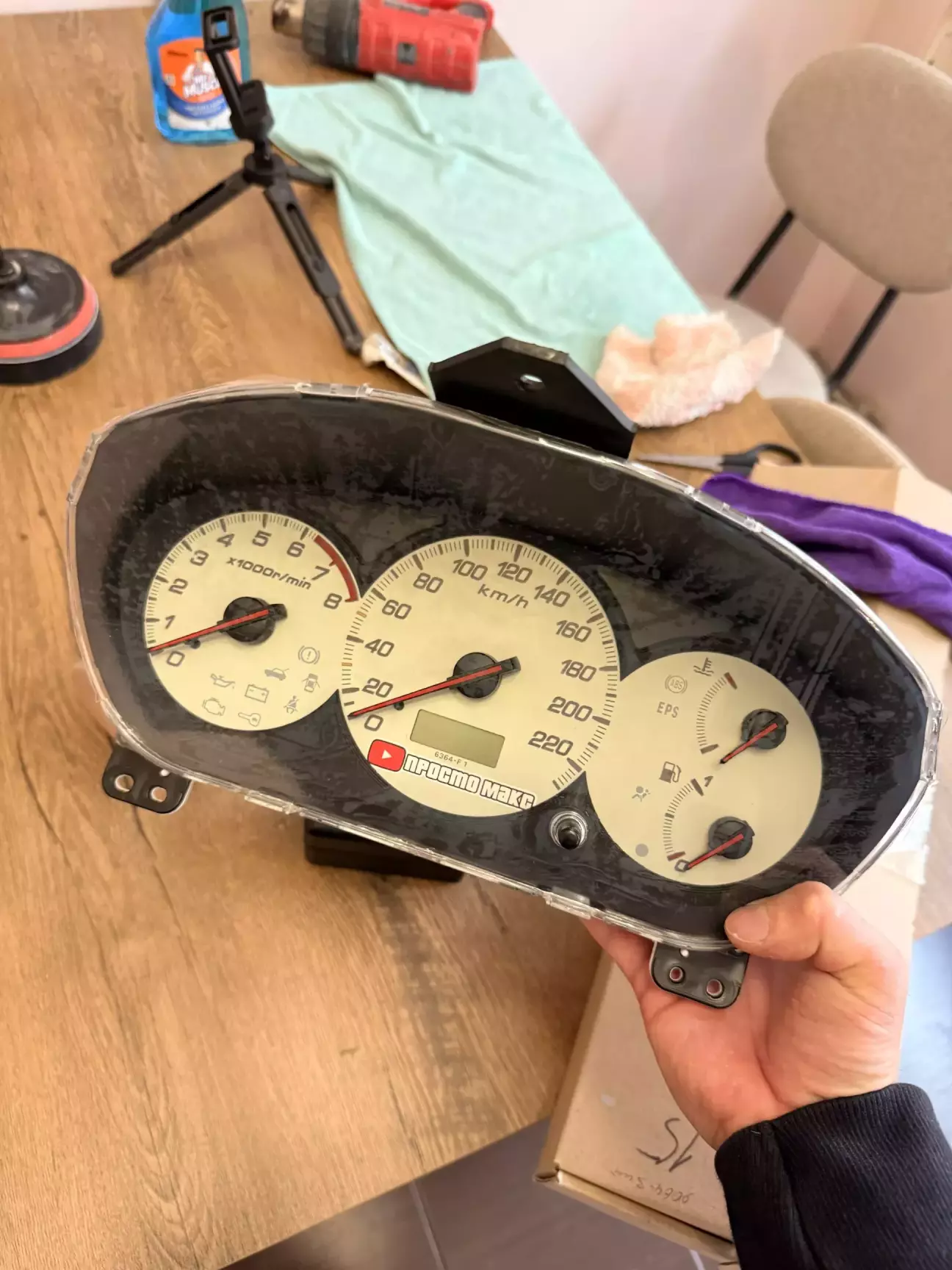 З часом скло приборної панелі сильно затерається і дряпається. Тож я відполірував їх і заклеїв бронеплівкою.