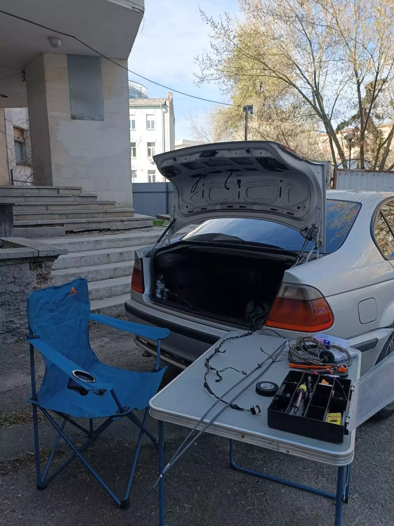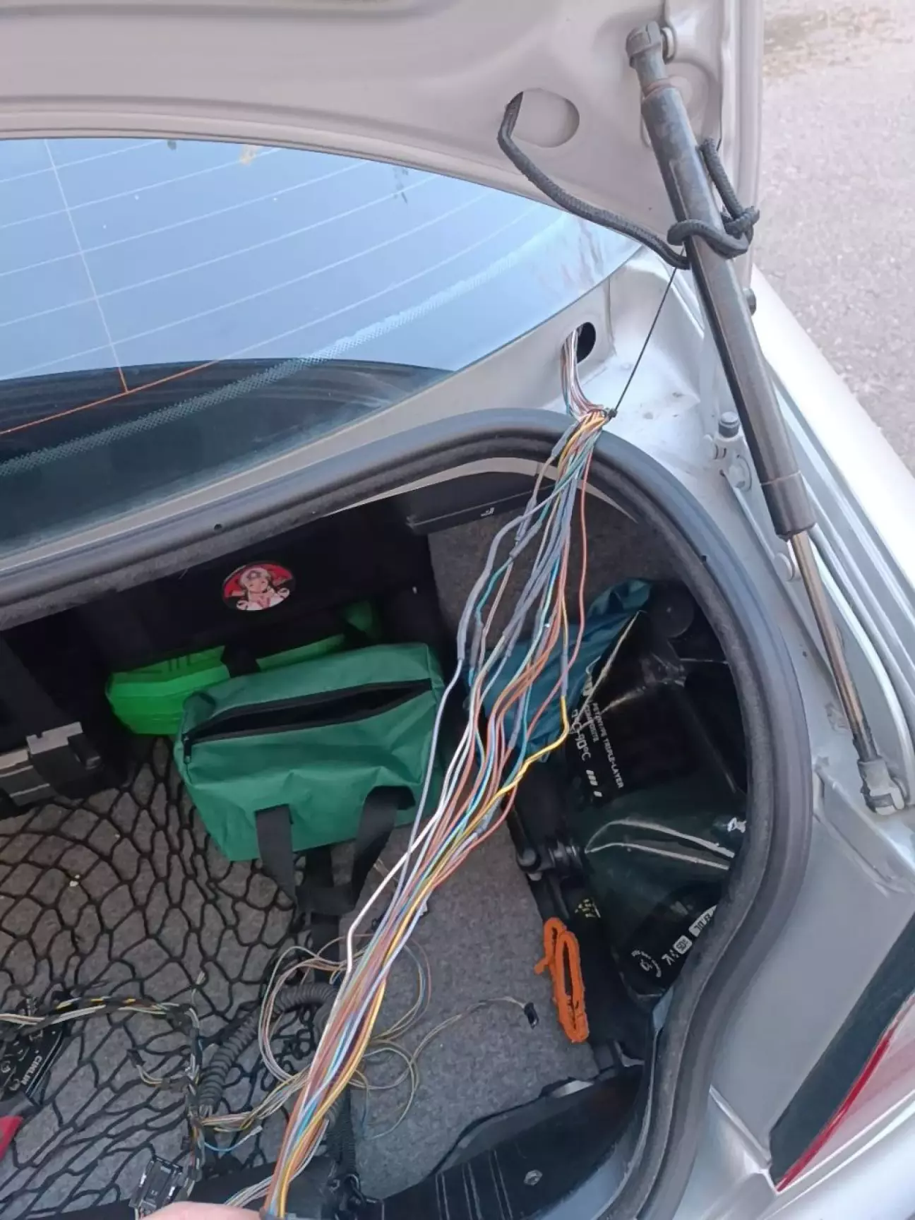 Отже єдине правильне рішення було виконати з'єднання дротів в більш статичних місцях. А саме в кришці багажника та в кузові авто. А в самій гофрі чисті без ремонтів дроти замотані в стрічку. Тут вже нормально не побавишся роботою за кемпінговим стільчиком, а рачки в багажнику)))
