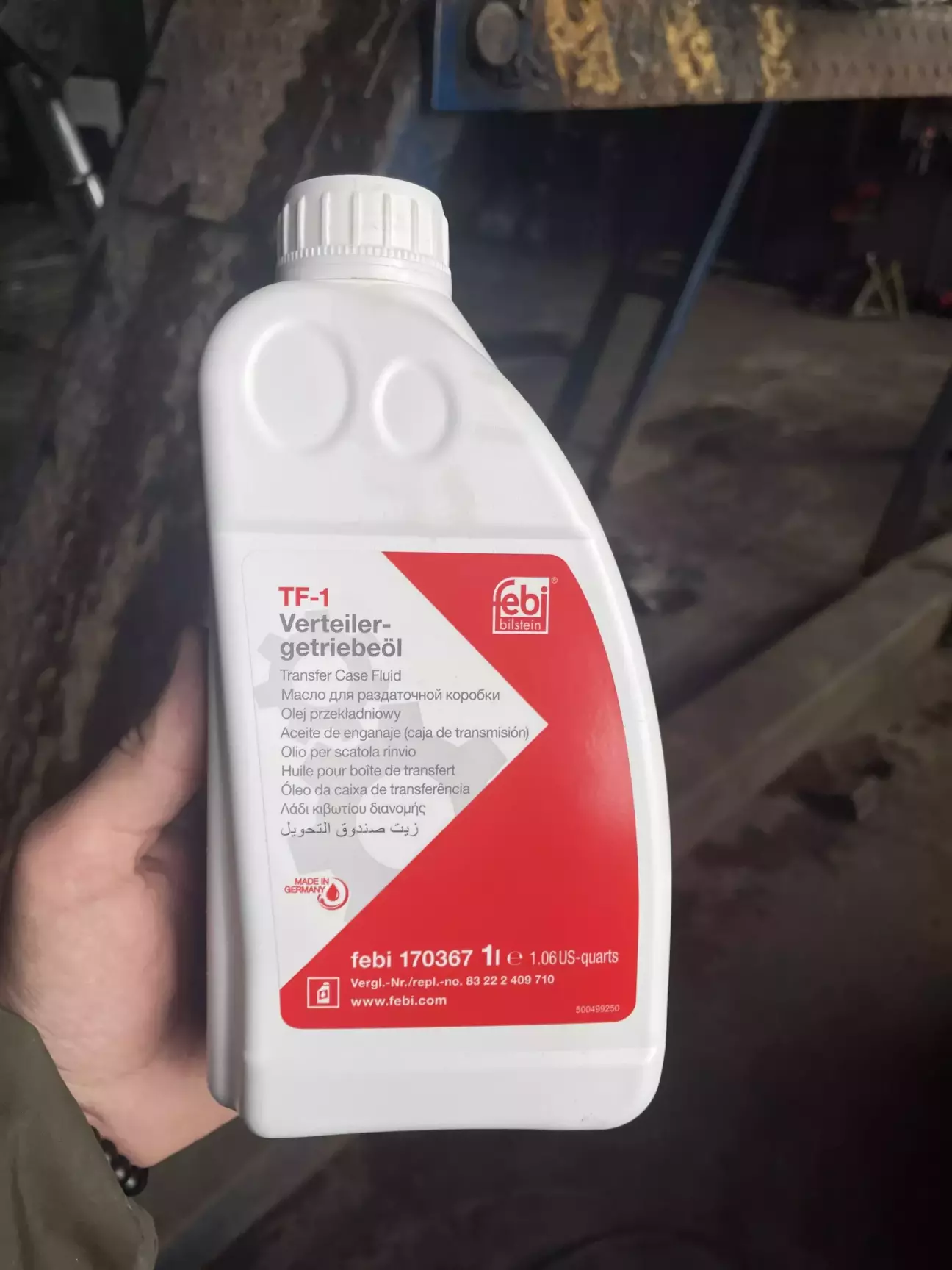Далі замінили мастило в роздатці. Якщо з мостів злилось можна сказати чисте мастило то з роздатки злилось на колір як болото, про попередню заміну мови не було… не дарма я вирішив замінити всі мастила. Злилось 0.5л, а залили по рівні 0.8л. Варіант мастила був оригінал 4800грн за 1л. або ж FEBI TF-1 850грн за 1л. Вирішили взяти на пробу Фебі і по весні замінити ще раз і за одно подивитись на якість мастила.