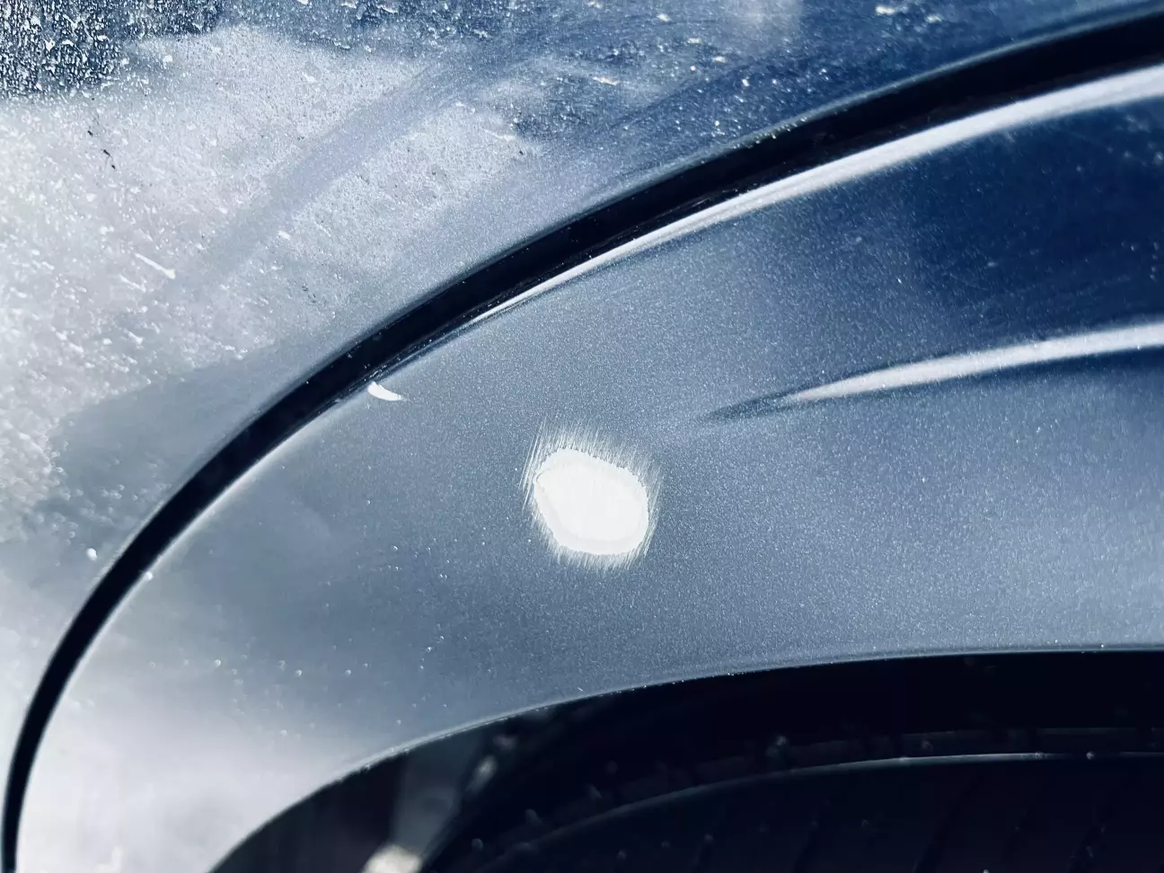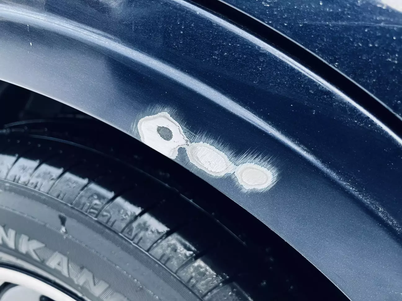 Здуття фарби на обох задніх арках та куті переднього крила, подряпини на лівому крилі бампері біля розбитого ліхтаря, вмʼятина на лівій задній арці. посеред правих задніх дверцят, глибокий відкол з вмʼятиною на крилі біля решітки…