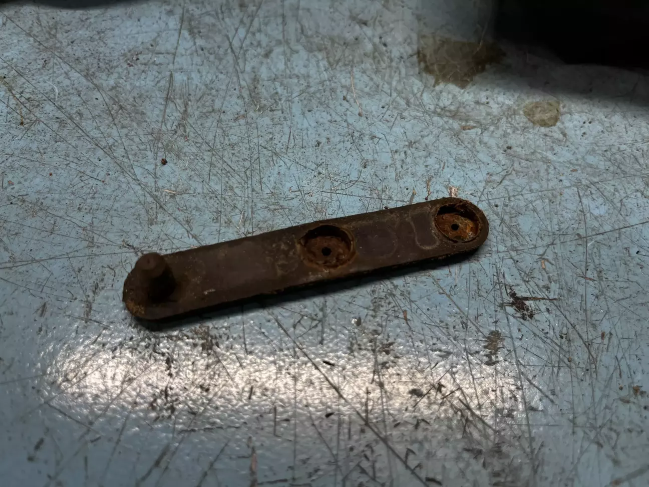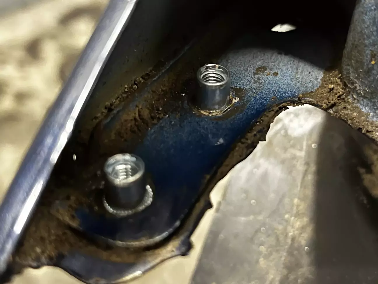 Виявилося, що Chrysler якогось дідька вирішив, що шпильки, впаяні в пластикову пластинку - це гарне інженерне рішення. Звісно, ці шпильки з тої пластинки випали, а схопитися за них зверху цілком неможливо.