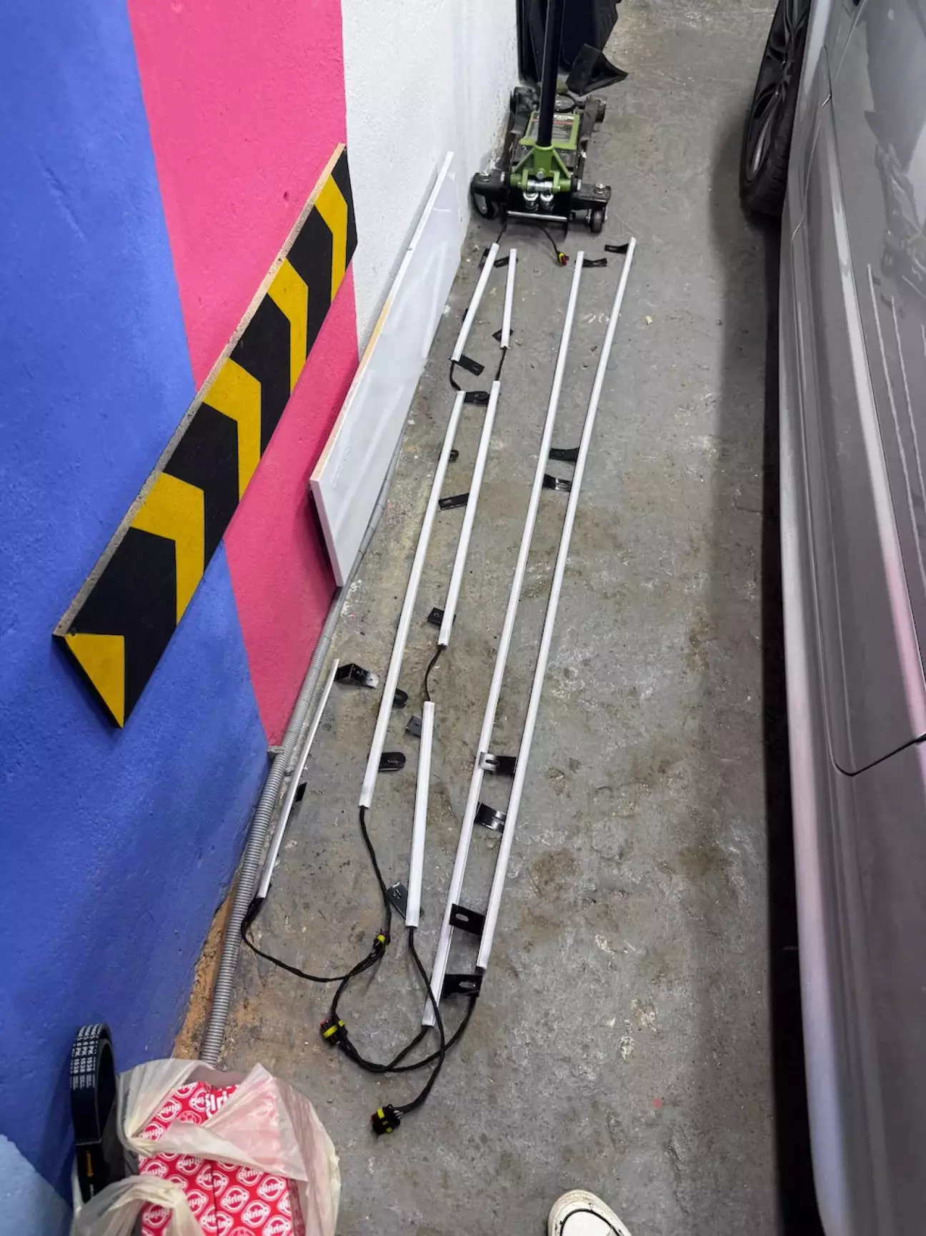 1. Для Underglow була закуплено 10м led стрічки 5050 зі ступенем захисту ip65, алюмінієвий гнучкий профіль з матовим розсіювачем, який виконує також фунцію каркасу і направляючої. До профілю заклепками були приєднані кронштейни з отворами в місцях штатних кліпс/пістонів/болтів порогів і бамперів.