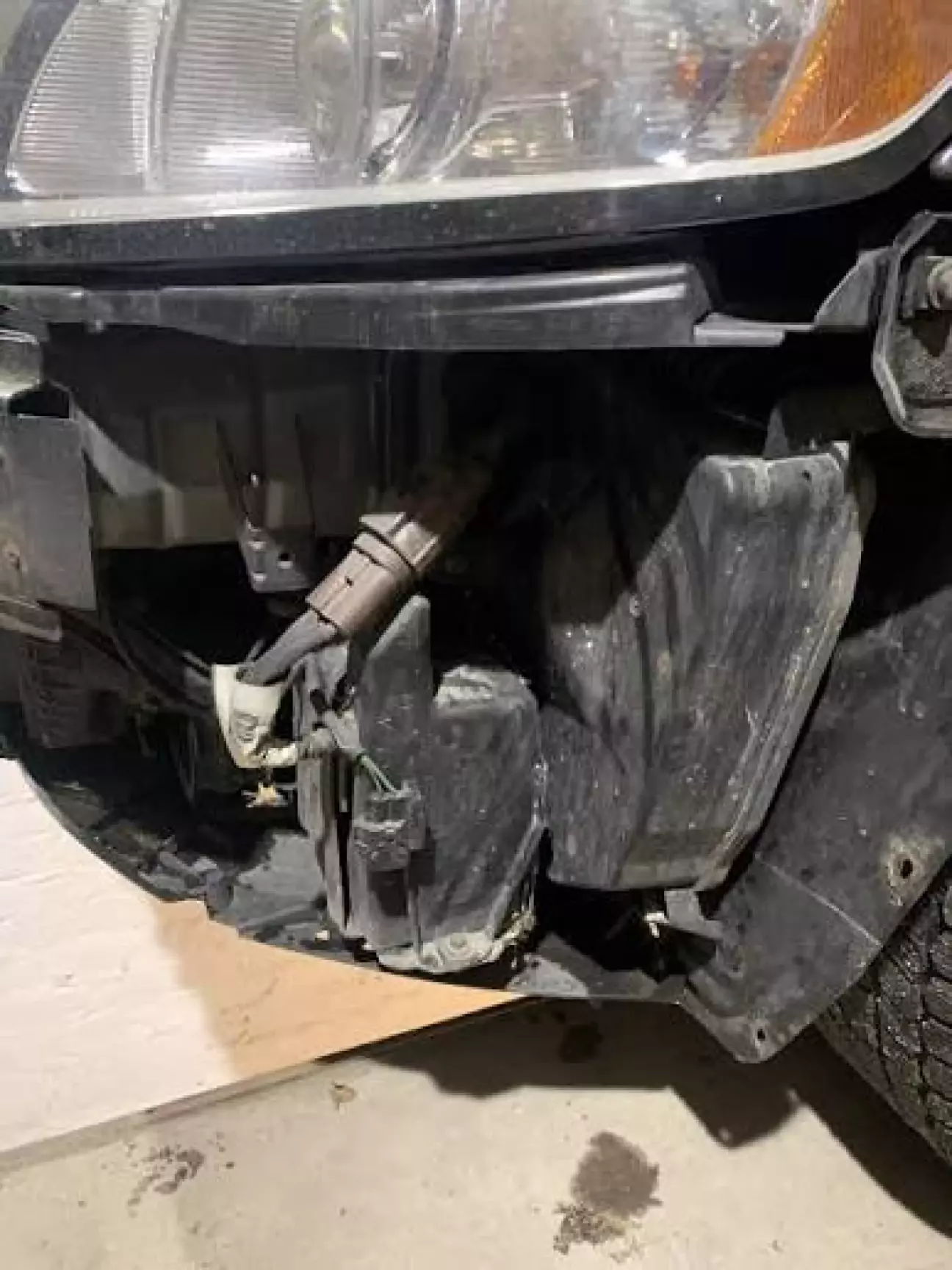 Відкрутити болти і пластикову гайку підкрилка, зняти для хручності фару, зняти (відхилити) ліву частину і перед бампера