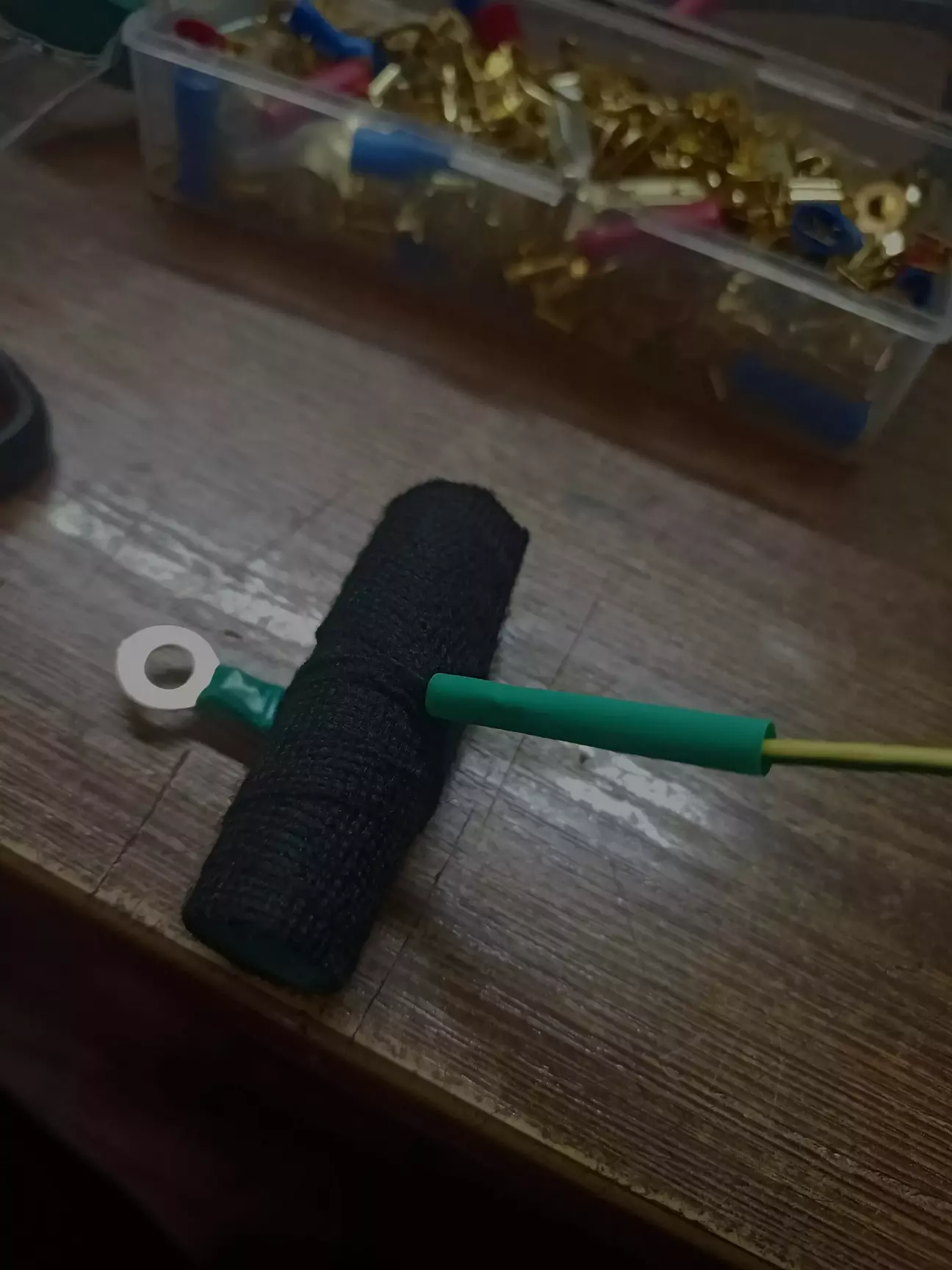Далі на мінусову скрутну обжимаємо кільцеву клему під болт М6 і для додаткового посилення капаємо припою. Все це ізолюємо від зовнішнього впливу.