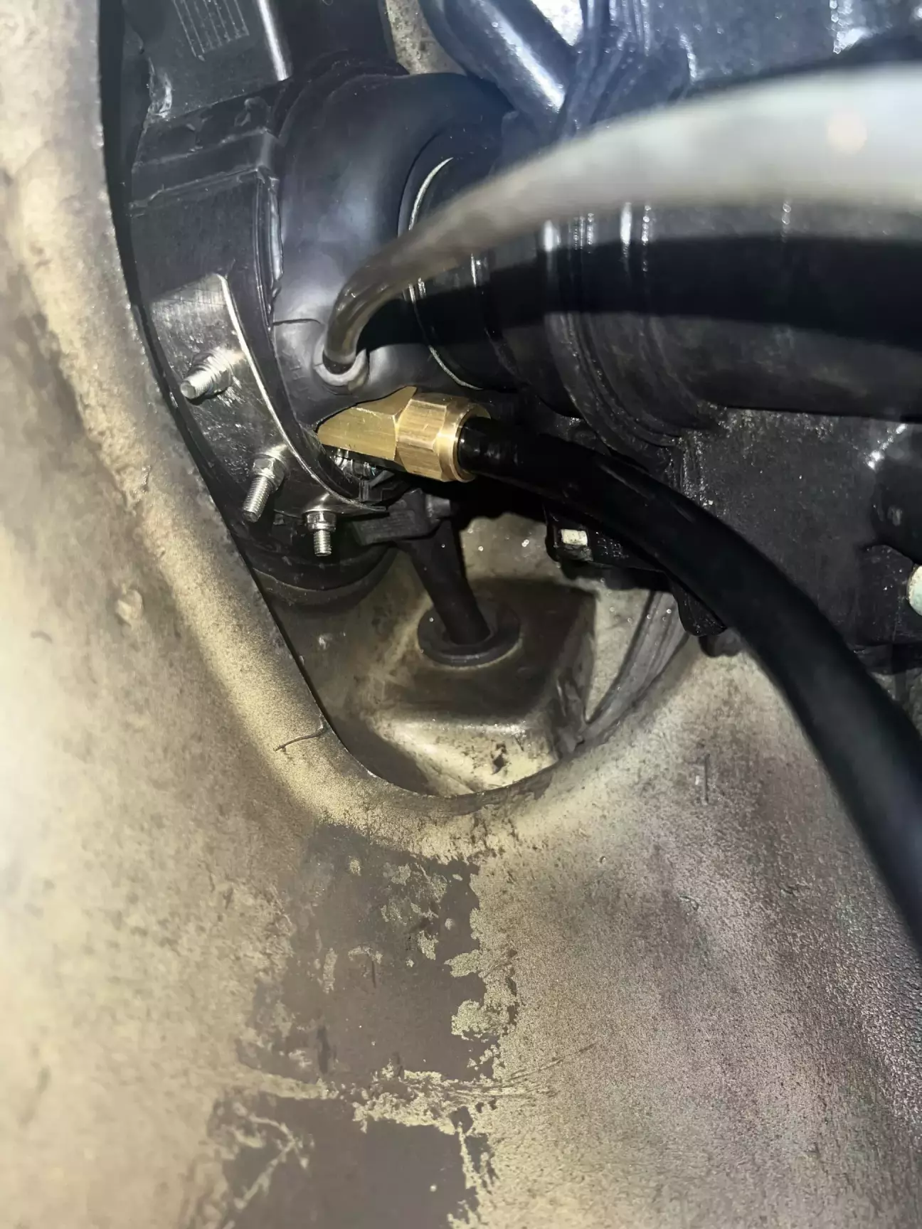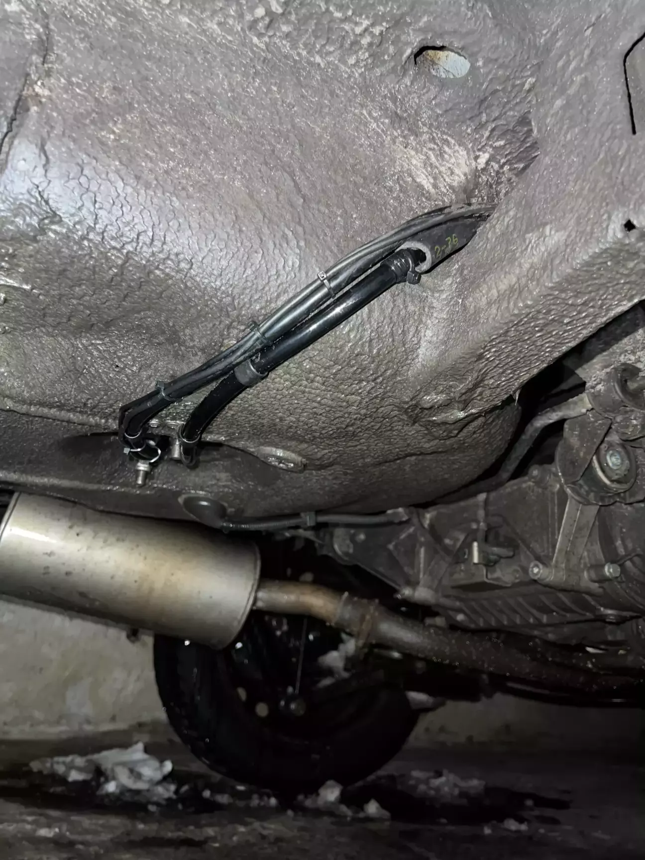 Встановивши весь цей витвір мистецтва (колхоз 😁) на своє місце, приступив до кріплення термопластикової трубки. Вирішив на болт кріплення горловини бензобаку прикрутити кріплення для трубки щоб вона там не бовталась туди-сюди. Викручуючи болтик м6 він вирішив нафіг відламатись.... Класссс 😡 Але пощастило що там є ще один отвір і я в нього вставив болт м8 та притягнув кріплення. Потім нижче на трубку надів шланг щоб на лонжероні вона не перетерлась.