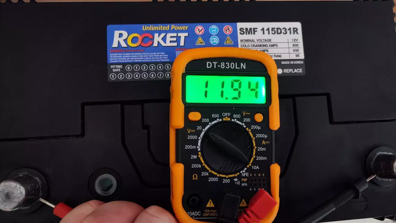 Зняв акум, на зарядку. Він 2021р.,Після двох днів зарядки і відстою показує лише 11.94v - треба міняти. Трошки поїздив 12,4v це десь 70%.