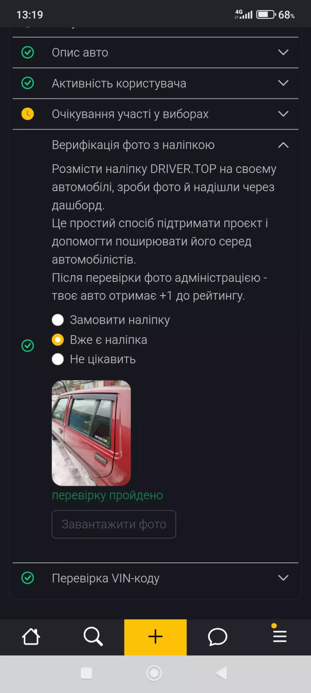 Як ви пам'ятаєте, я замовляв наліпку driver.top та через певний час пройшов верифікацію на сайті.