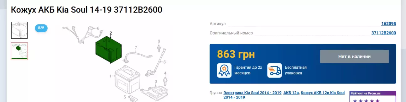 Спершу попався на Prom б/у варіант під 60й АКБ від Hyundai Kona /Kia Fotre (37112A7100) ціною в 8$,