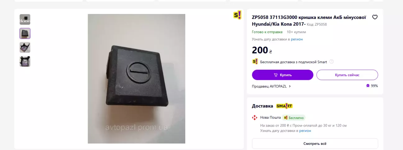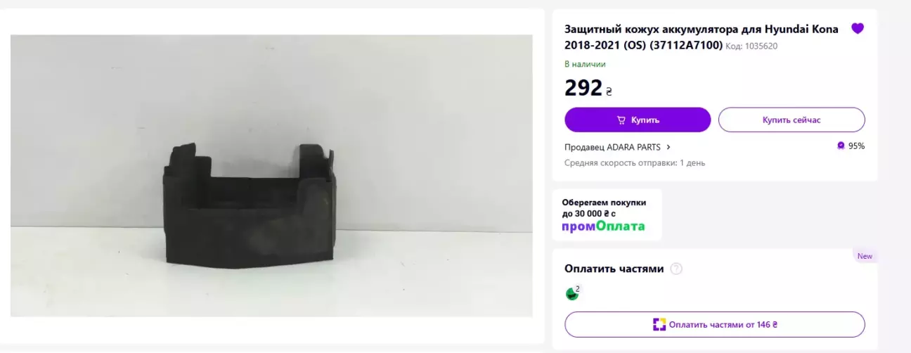 Крім того, потрапила в очі на том же Prom - кришка мінусової клеми від знову ж таки - Hyundai Kona 😁 арт. 37113-G3000