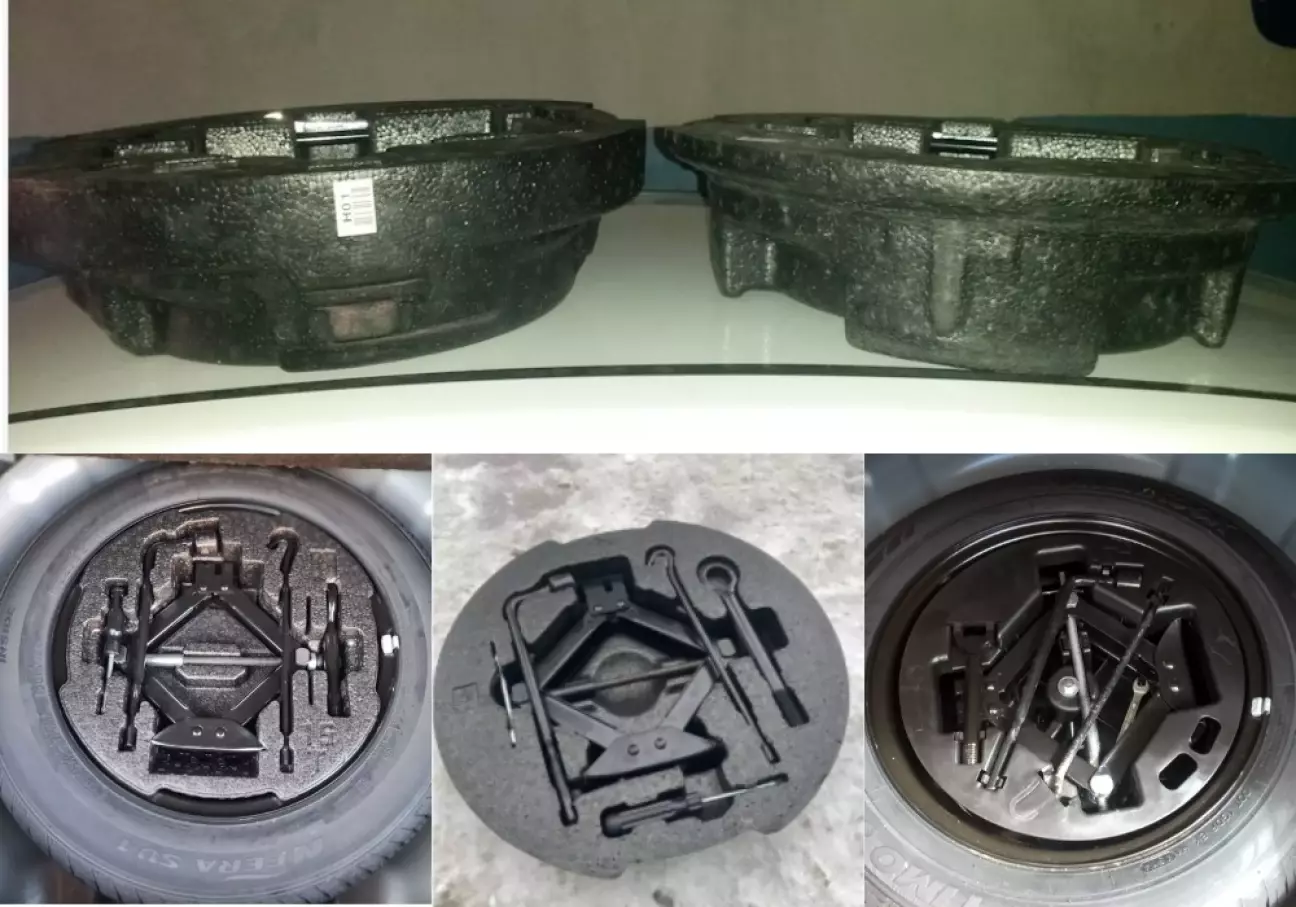 А ось воно що, виявляється. Останній варіант - пластик, відпадає відразу. А от пенопластові, поділяються на 2 підвиди. "Високі" під докатку, і низькі під повноцінну запаску. І відрізнити їх можна лише маючи фото збоку, або знаючи точний артикул.