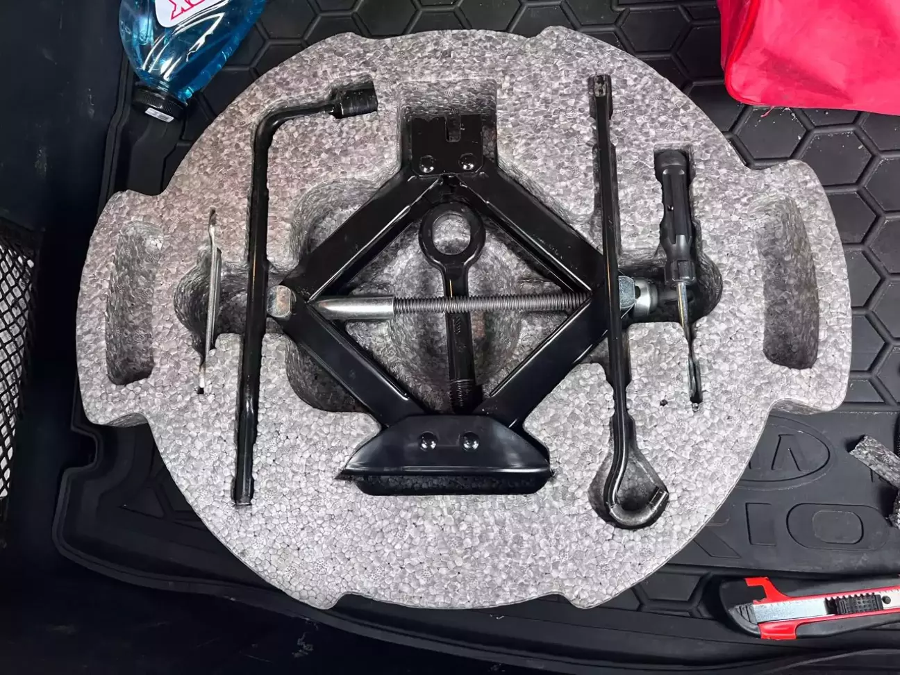 Так вирішили виробники - що Rio UB із заводу має АБО домкрат з балонником, гаком та викруткою, які складені у дермонтиново/тряпчані чохли просто насипом у докатку (артикули якщо цікаво - на другому скріні) набір з домкрату, балонника, гака які складені у дермонтиново/тпяпчані чохольчики прото насипом у докатку (саме наш варіант, офіціалів в Україні) АБО - без докатки, а з пластиковим оргагайзером під Tire Mobility Kit (TMK) з компресору, герметику і тієї ж викрутки та гака (так розумію - ринок USA)