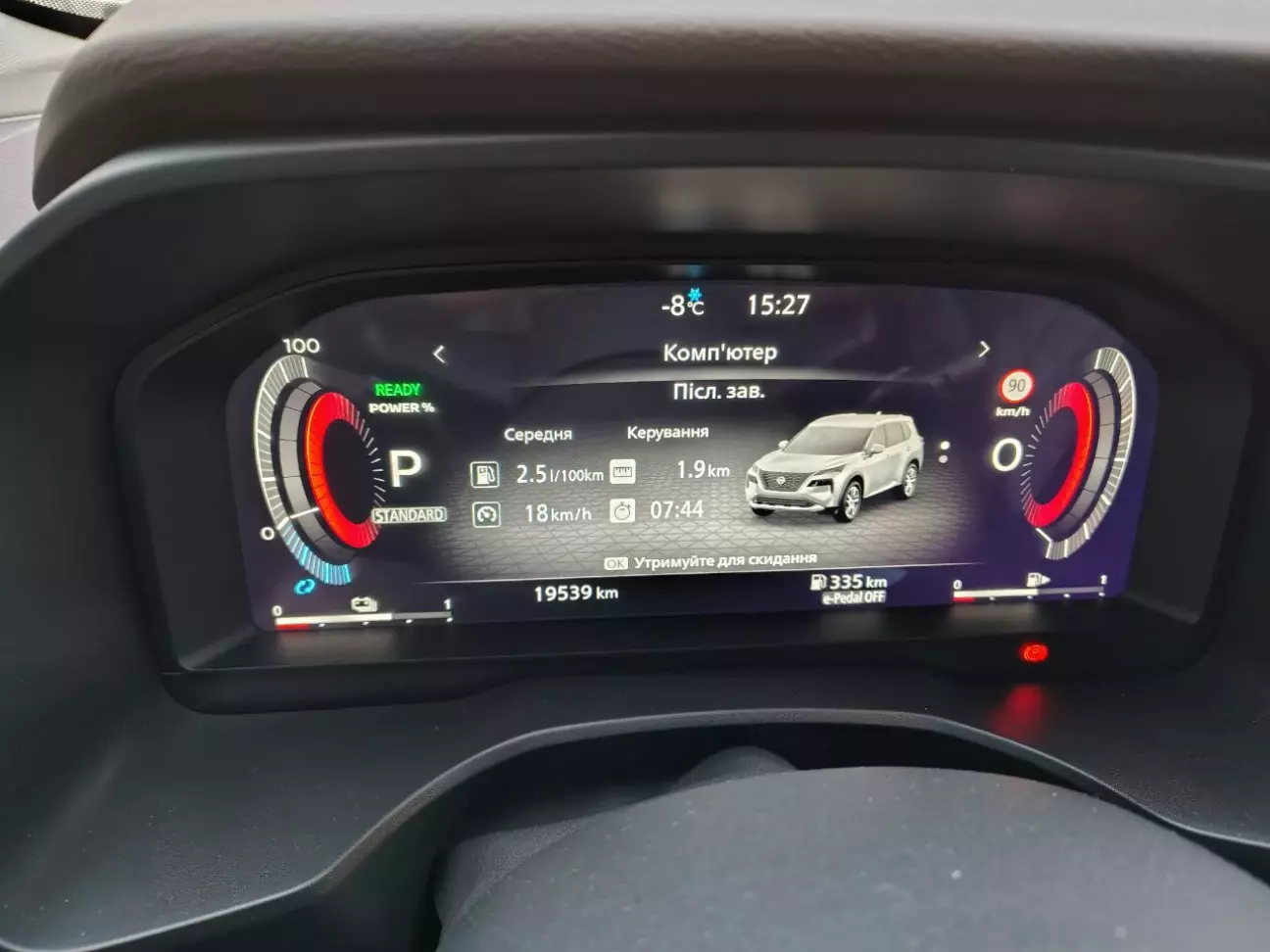 Звісно, зима диктує свої умови, і доводиться платити «зимовий податок». І гібрид тут не виключення. Витрати палива зросли в деяких випадках на 4 літри, але це через те, що більшість часу користування у мене - це короткі поїздки містом. Тому зазвичай бачу на екрані витрат ось таку картину