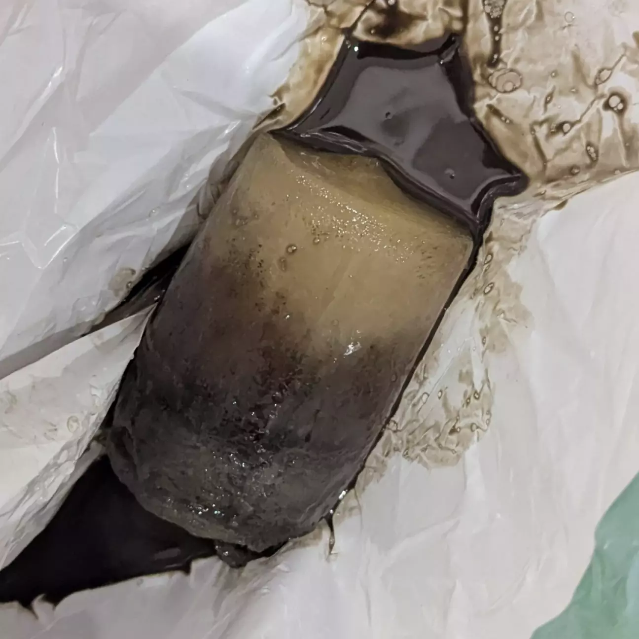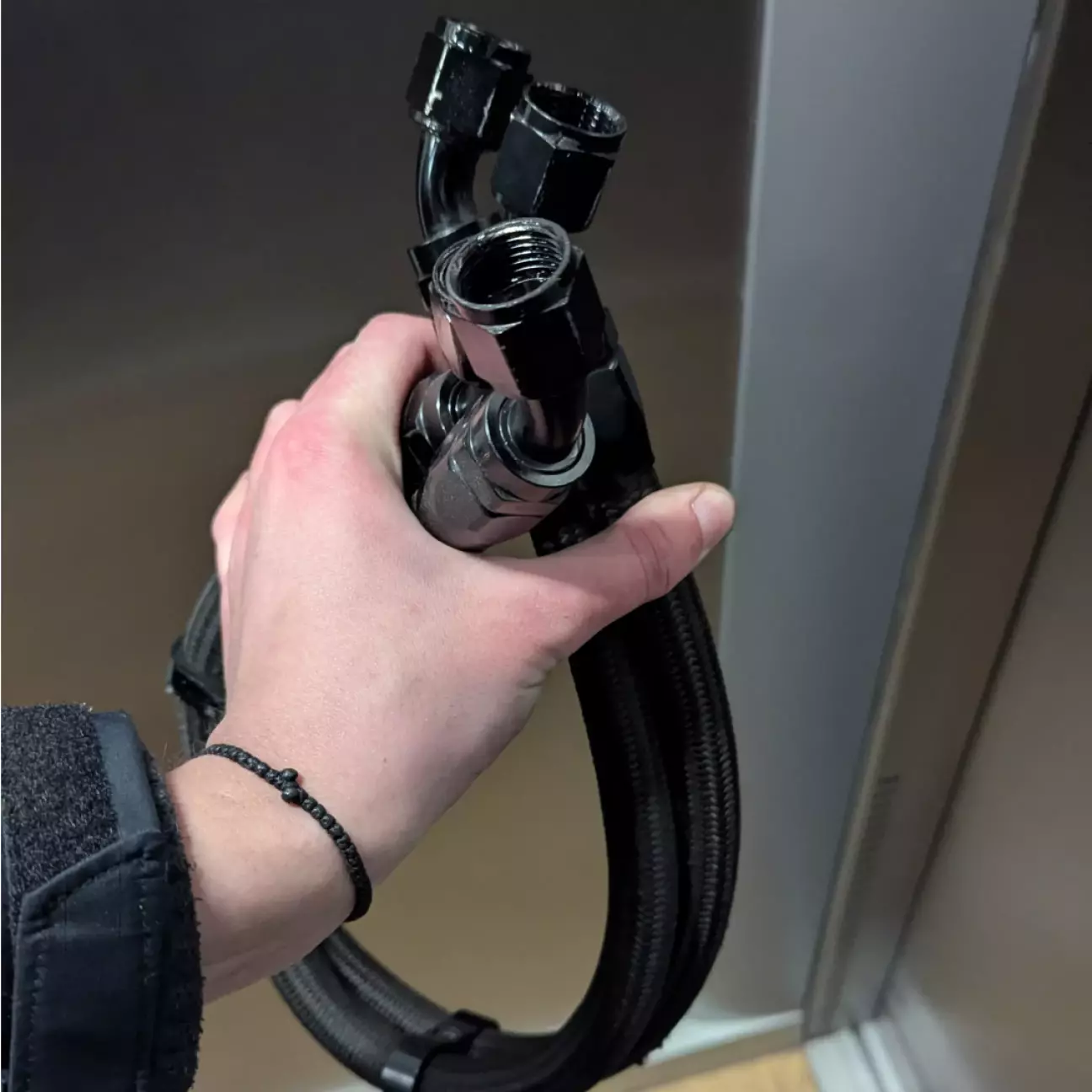 Під час огляду шлангів один із них, розташований нижче, був твердим на дотик. Обидва шланги зняв і знову забрав додому. Після відтаювання з них вийшли шматки льоду. Орієнтовно 20-30% прохідності були перекриті. Кожен шланг промив очисником і перевірив прохідність, заливаючи рідину з одного боку і перевіряючи вихід з іншого.