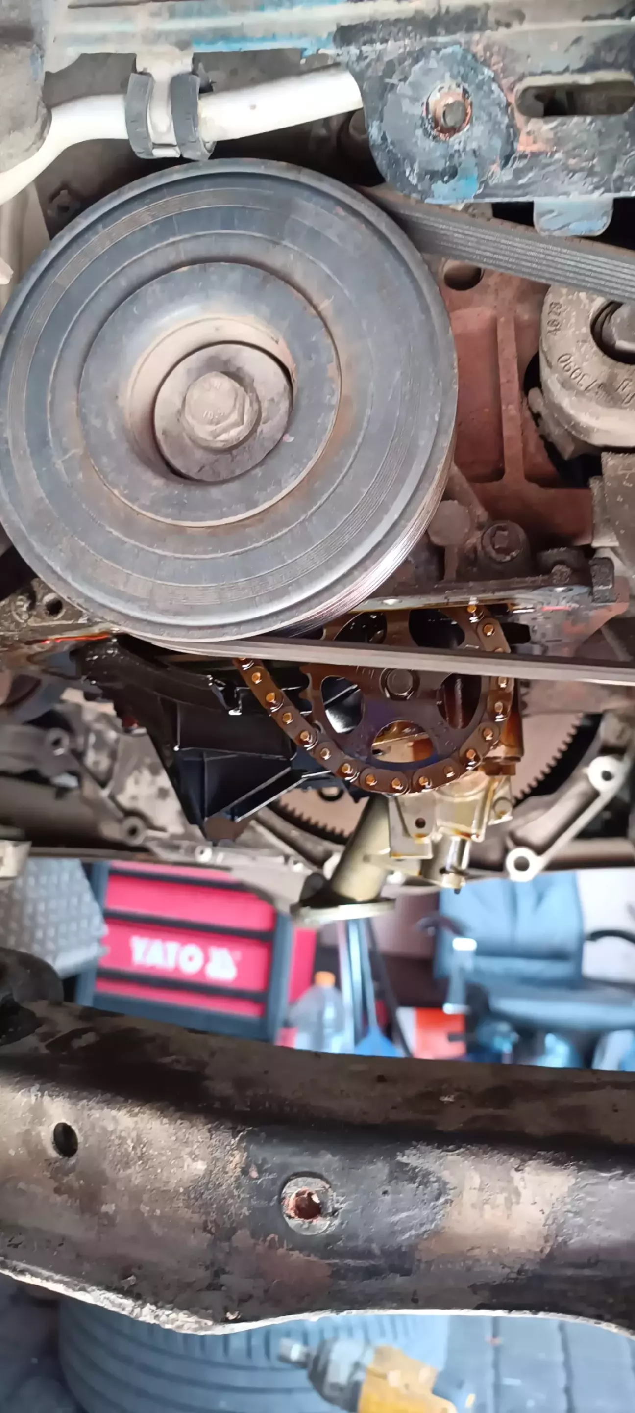 Чи то БМВ поруч постояла, чи француженка ревнива, не було мене неділю. Приїхав і потім до авто а під авто пляма на 2 ладошкі, мастила. Перегнав на інше місце, на чисте, попрацював двигун трохи, трохи назад здав все чисто на асфальті. Але сліди на двигуні є.