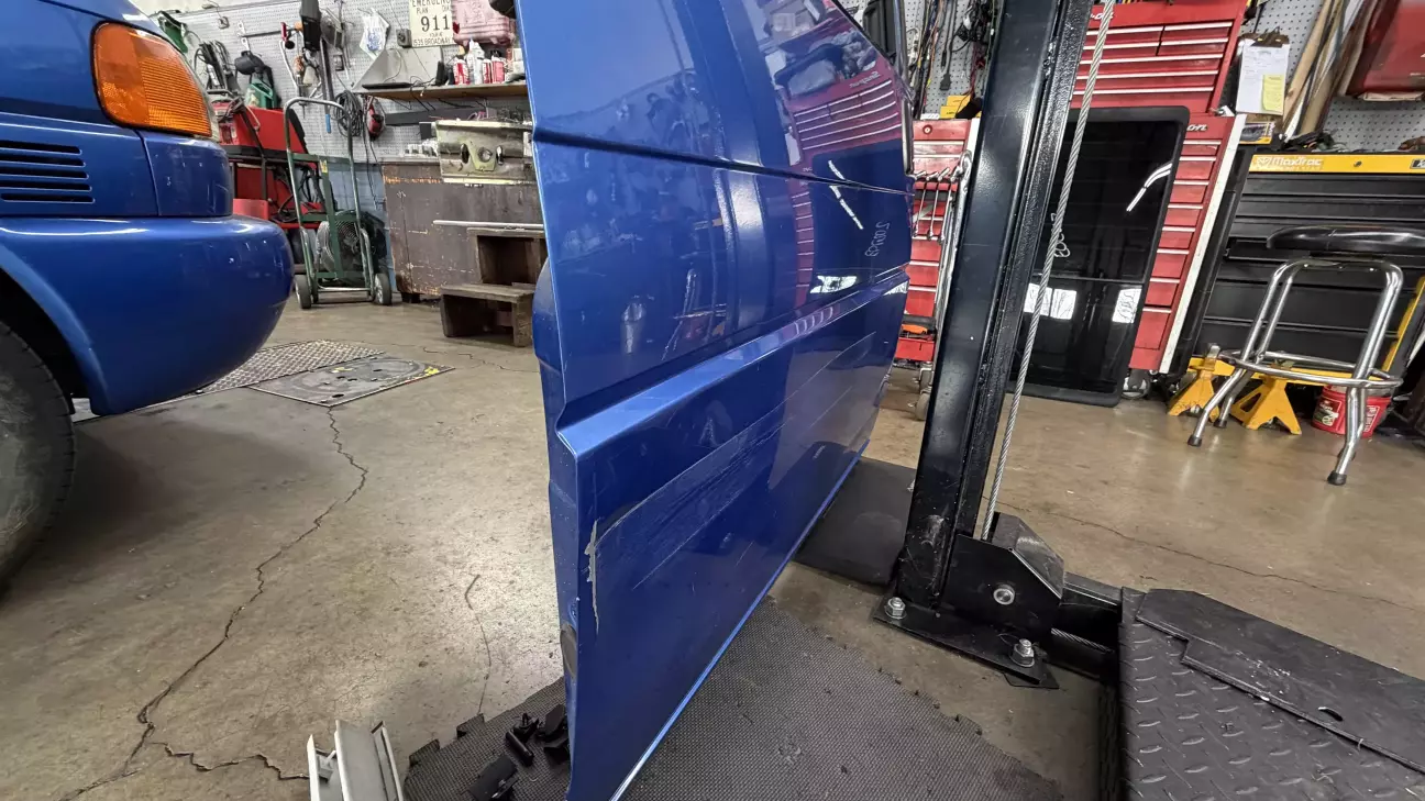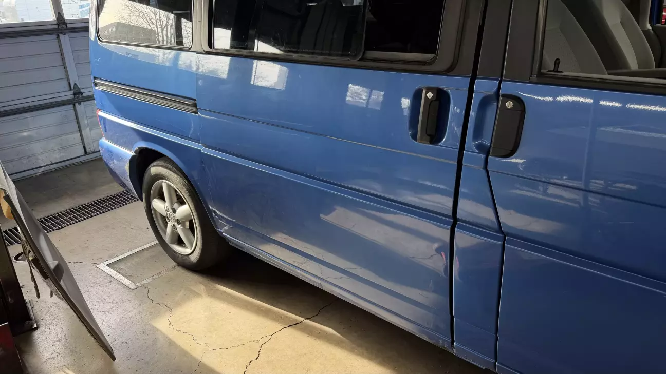 Купив із м'ятими зсувними дверима. Так як в штатах кузовщину робити не вміють, то знайшов б/в двері в зборі і в колір за 250 $ плюс 50 $ доставка. Це вдвічі дешевше ніж рихтувати та фарбувати.