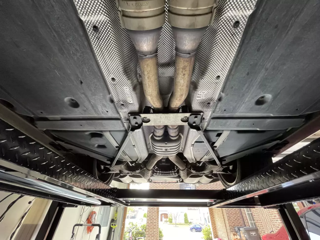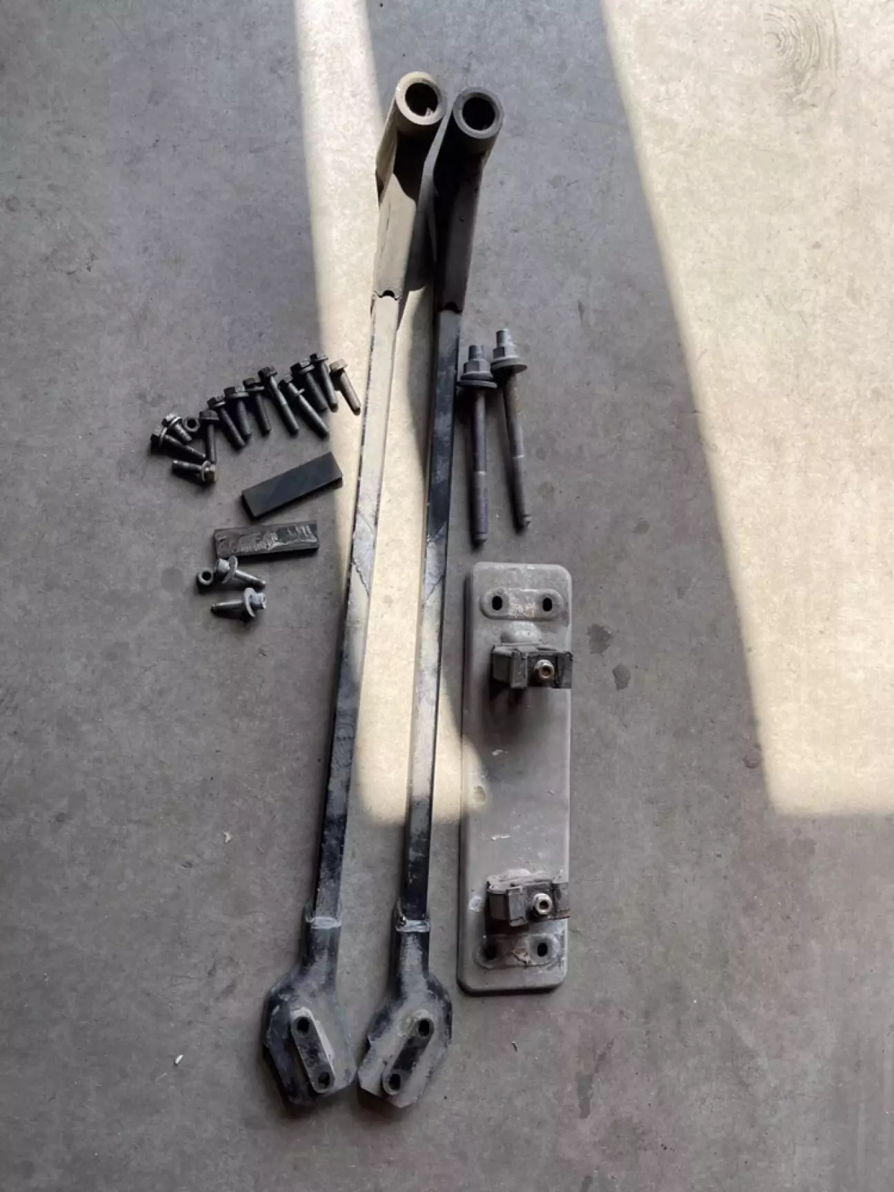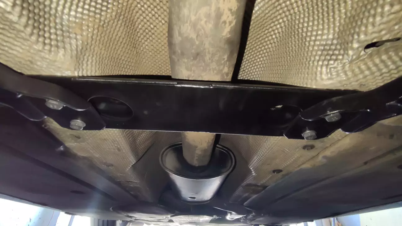 Замінив центральний кронштейн, він алюмінієвий з виямками під тяги, також довші болти. Болти заднього підрамника мають посадку під тяги та різьбу для них. Кожухи (пильники) бака підрізав свої. Також потрібно докупити резинки які ставляться між кріпленням бака і розпорками. Тимчасово підклав пластик, щоб не терло метал об метал.
