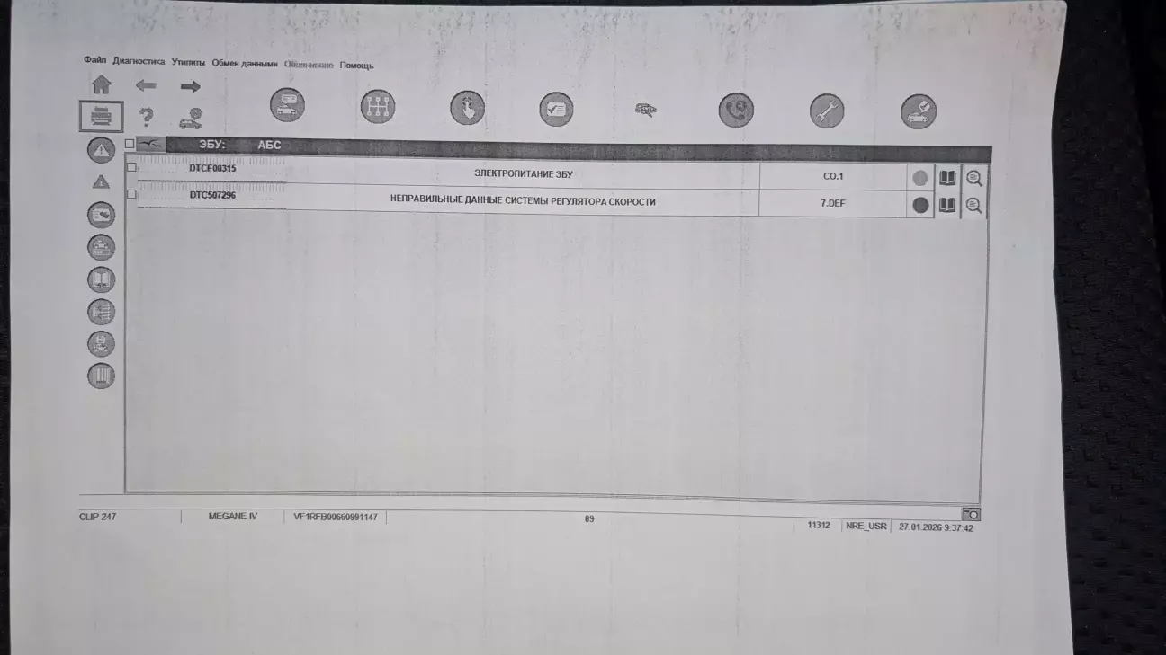 Був на місцевому СТО, там знайшли такі помилки (дивитись нижче), запропонували дочекатись тепла, і якщо вже не зникне, то тоді цим від меншого до більшого, починати зі знімання і перевірки датчиків абс і потім вже глибше.