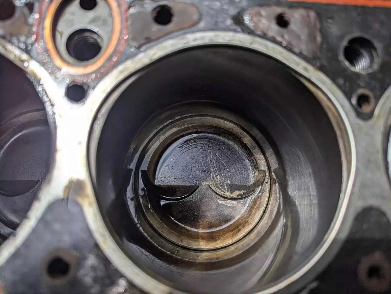 Купив новий, навіть два, але при заміні вже сам не розумію як так вийшло, коли зібрав то вже двигун не запускався. Тоді подумав на те що не попав в мітки, почав виставляти, короче навиставляв. Двигун запустився на 1 циліндрі, тоді ще думав що причина в запаленні. День погравшись, зрозумів, що нада знімати клапанку і дивитись, відкрилась така картина: