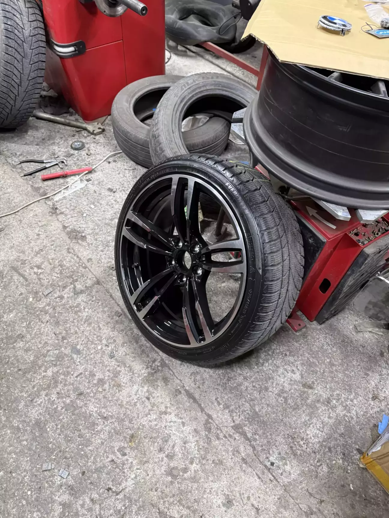 Поехали, взяли зимнюю резину — в гараже сразу обули диски и без лишней паузы поставили на машину.