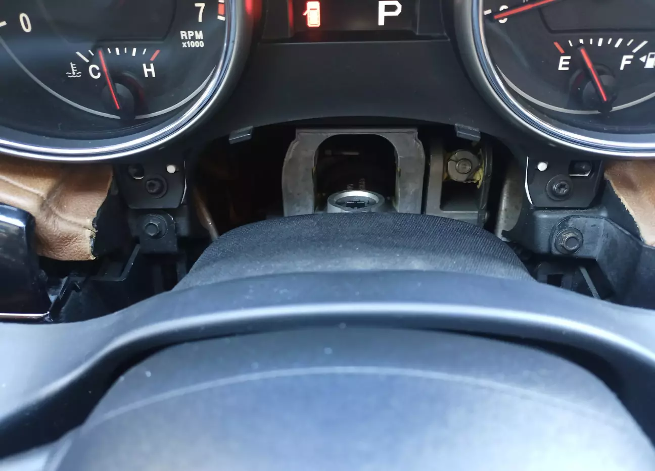 Далі зняти накладку вокруг рулевої колонки, там теж кліпси. І відкрутити саморіз накладки під кнопку запуску двигуна. Сама кнопка легко дістається лопаткою.